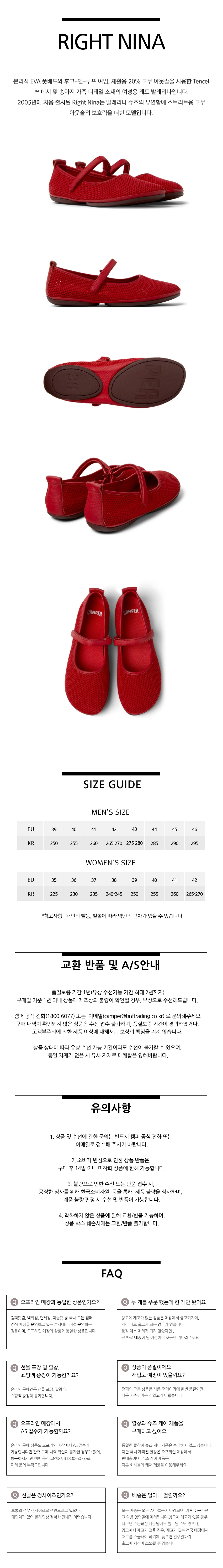 캠퍼 여성 라이트 니나 플랫슈즈 레드