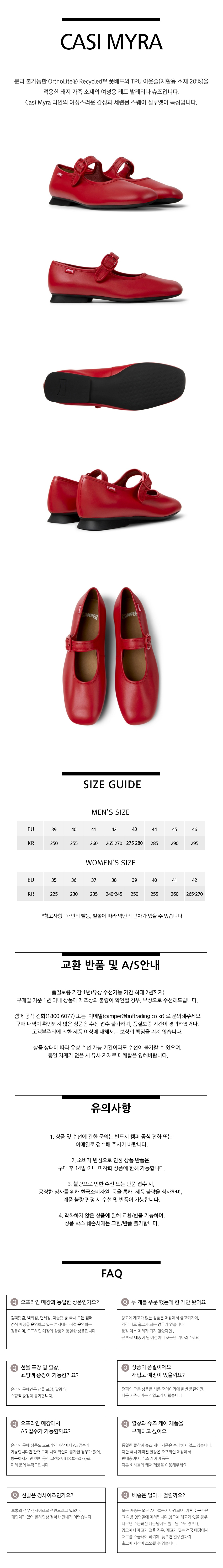 캠퍼 여성 카시미라 플랫슈즈 레드