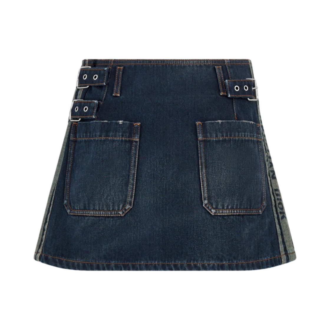 (W) 디올 코튼 데님 쿠튀르 랩 미니 스커트 딥 블루