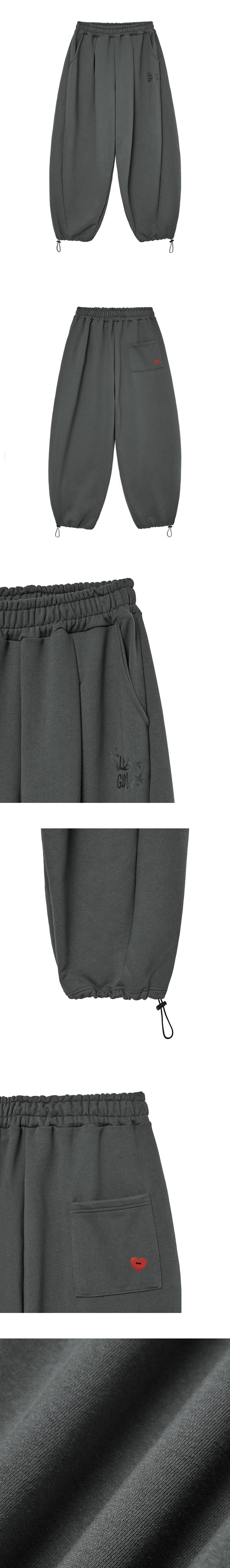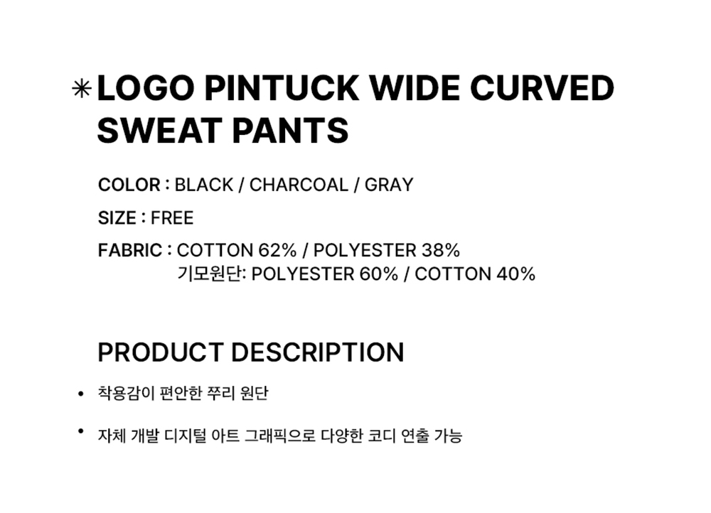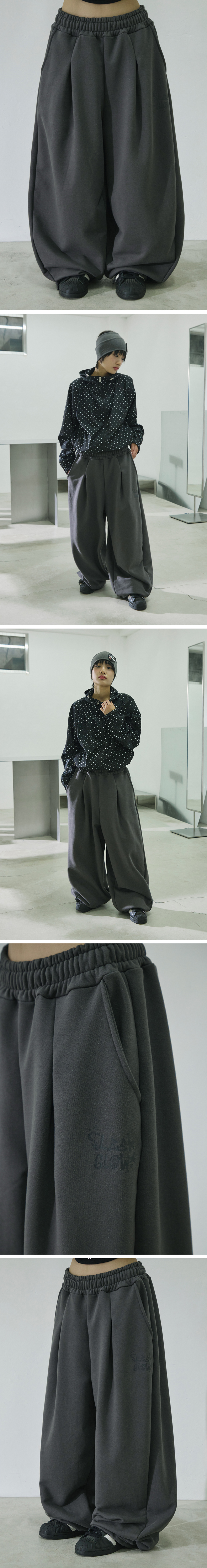 SLEEKGLOW Logo Pintuck Wide Curved Sweat Pants Charcoal