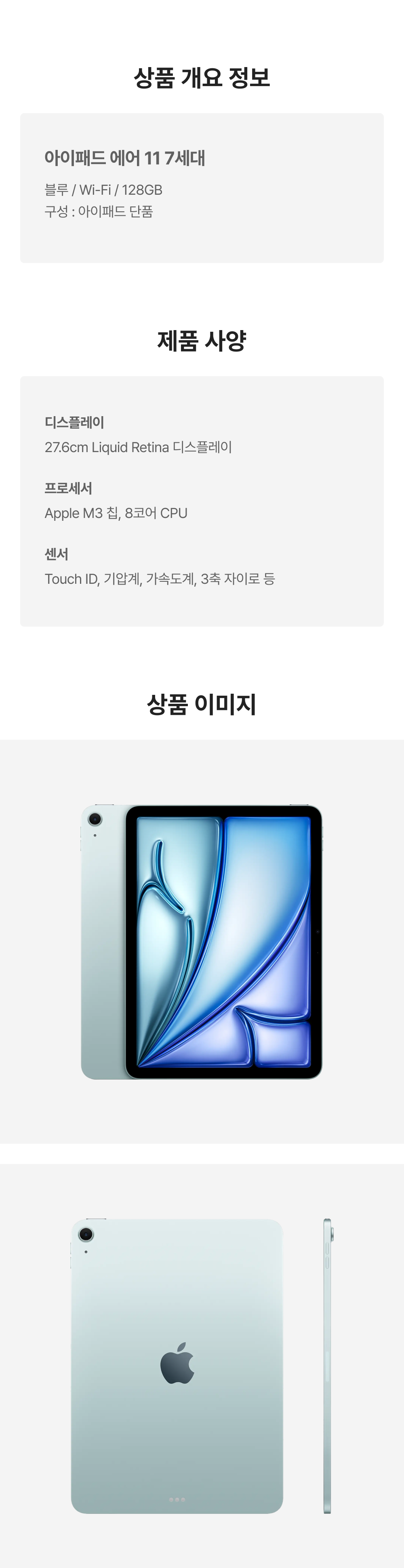 [S등급] 리퍼비시 아이패드 에어 11 7세대 wifi Apple M3 128기가 블루