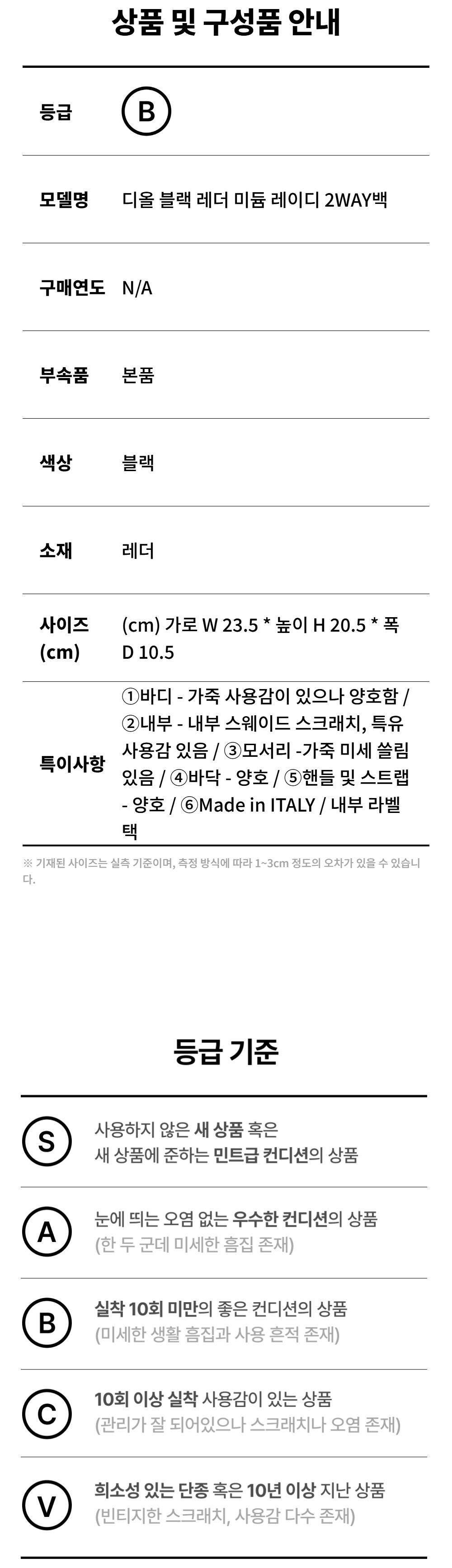 디올 블랙 레더 미듐 레이디 2WAY백 C-A50649