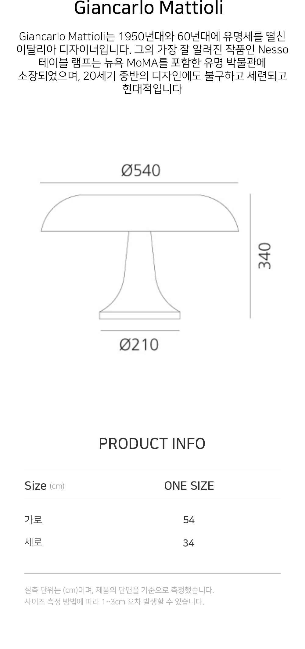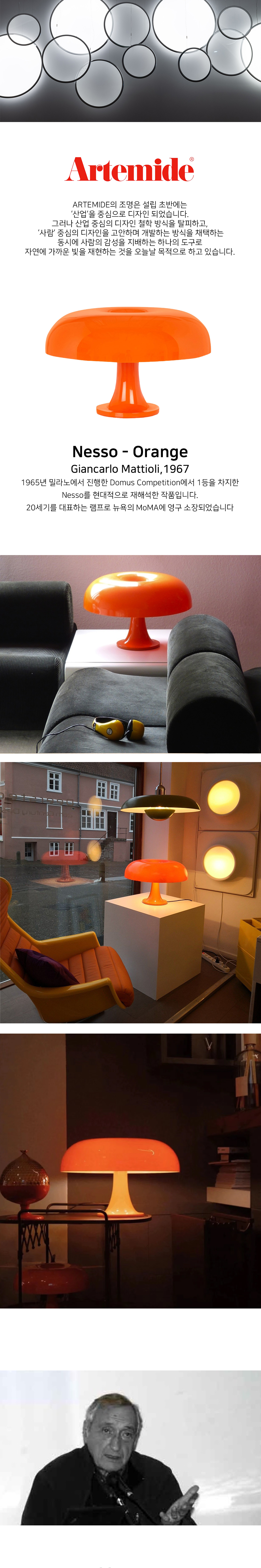 1950년대와 60년대에 유명세를 떨친 이탈리아의 디자이너 Giancarlo Mattioli. 그의 가장 잘 알려진 작품 Nessino와 Nesso 테이블 조명은 뉴욕 MoMA를 포함한 유명 박물관에 소장되어있으며, 20세기 중반의 디자인에도 불구하고 세련되고 현대적인 조명입니다.