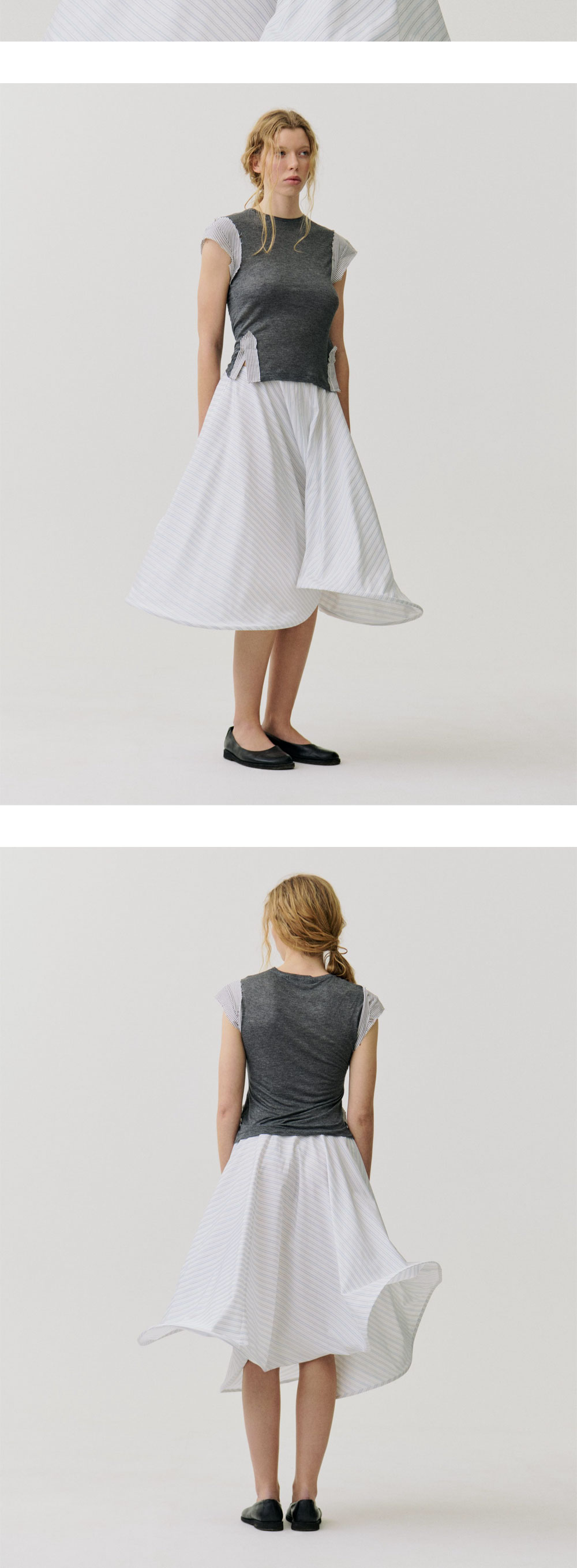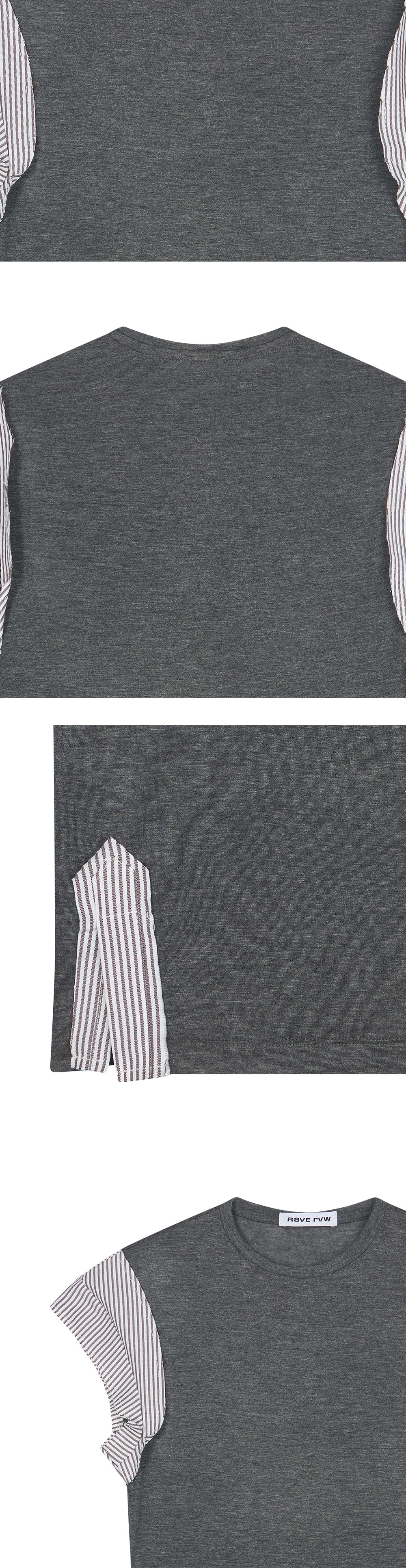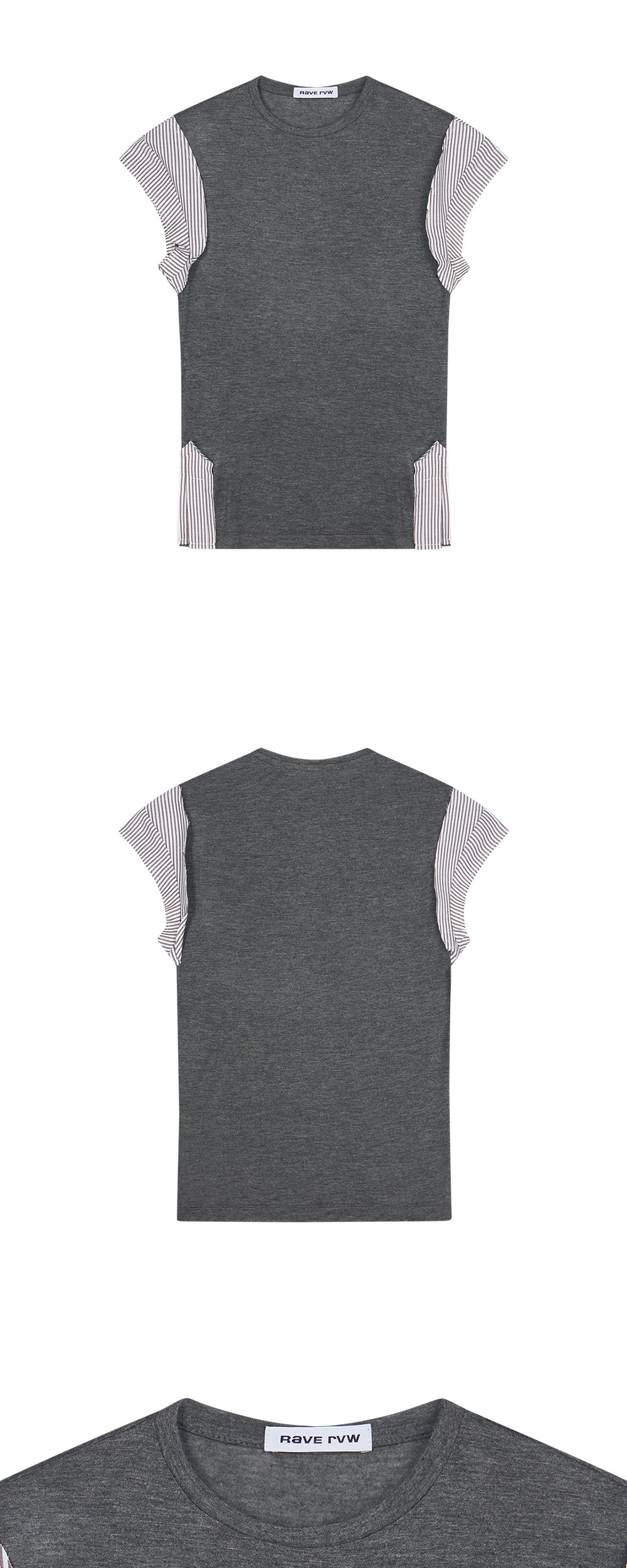 레이브 리뷰 우먼 이레나 탑 그레이 멜란지 입니다. - 데드스톡 소재를 활용한 친환경적 업사이클링 디자인 - 셔츠 요소를 해체하여 결합한 유니크한 캡 슬리브 디테일 - 밑단 사이드 트임과 셔츠 배색 포인트로 입체적인 실루엣 연출 - 부드러운 코튼 혼방 소재와 스포티한 무드가 조화로운 탑