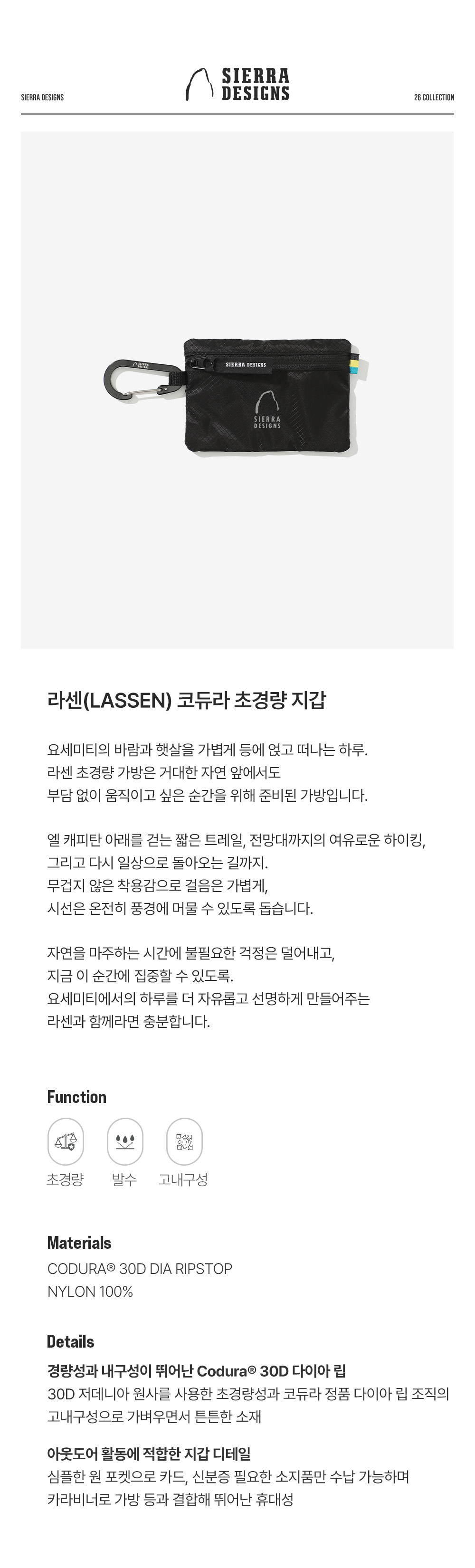 시에라디자인 라센 코듀라 초경량 지갑 차콜