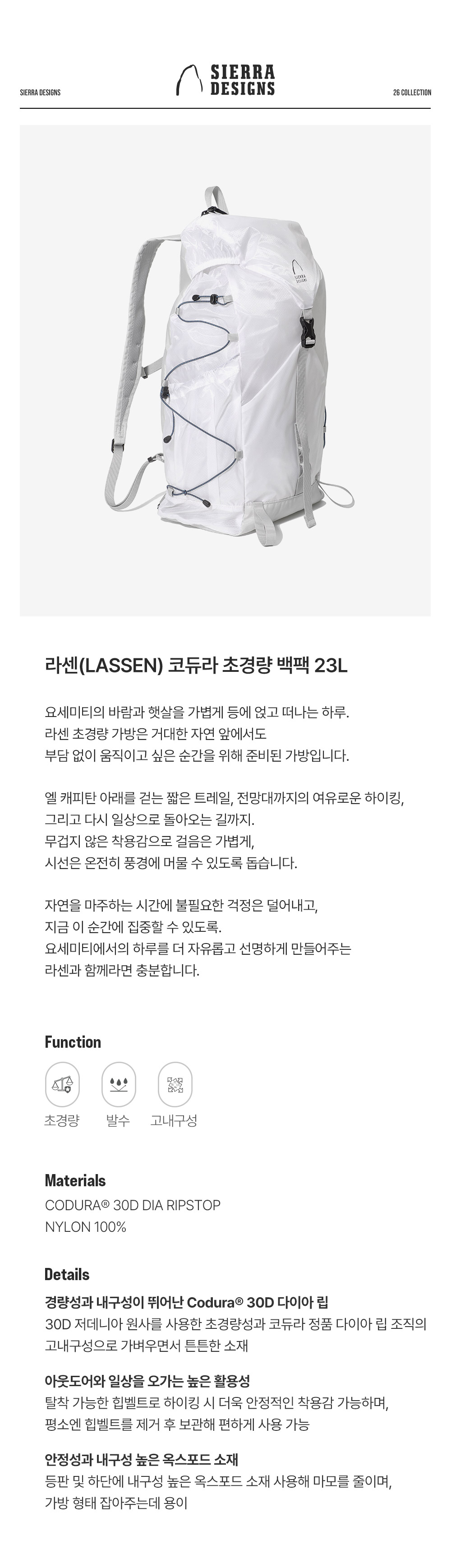 시에라디자인 라센 코듀라 초경량 백팩 23L 화이트