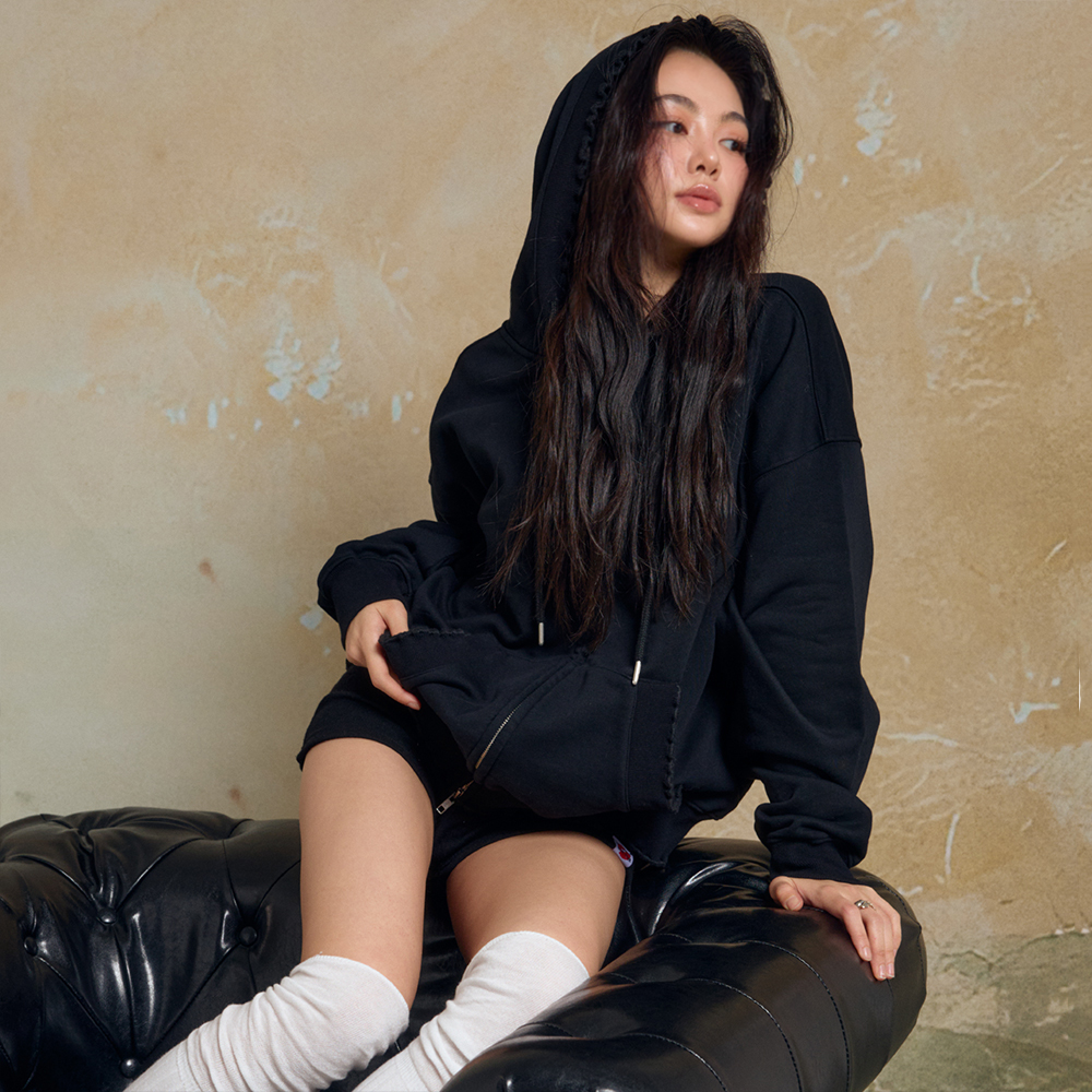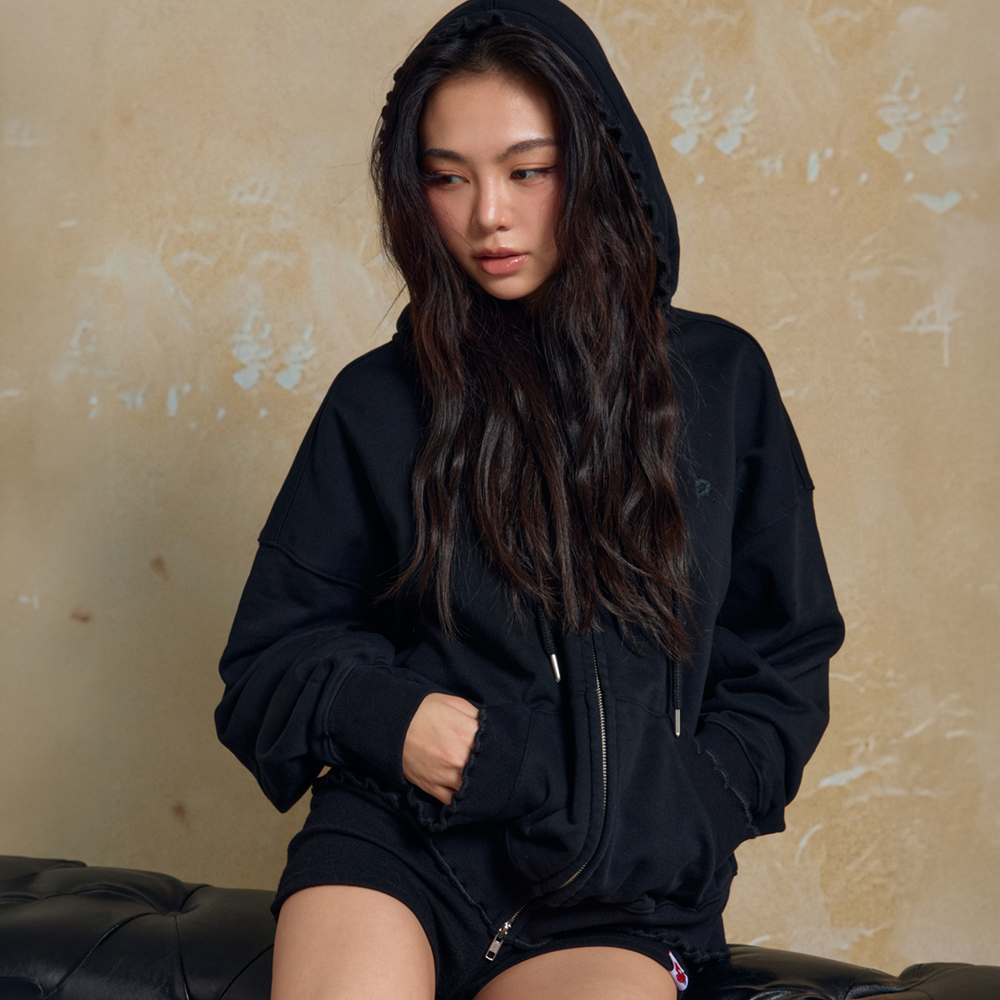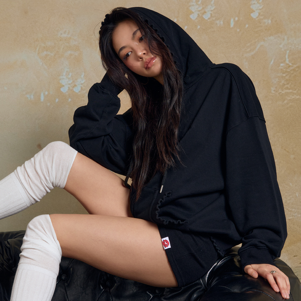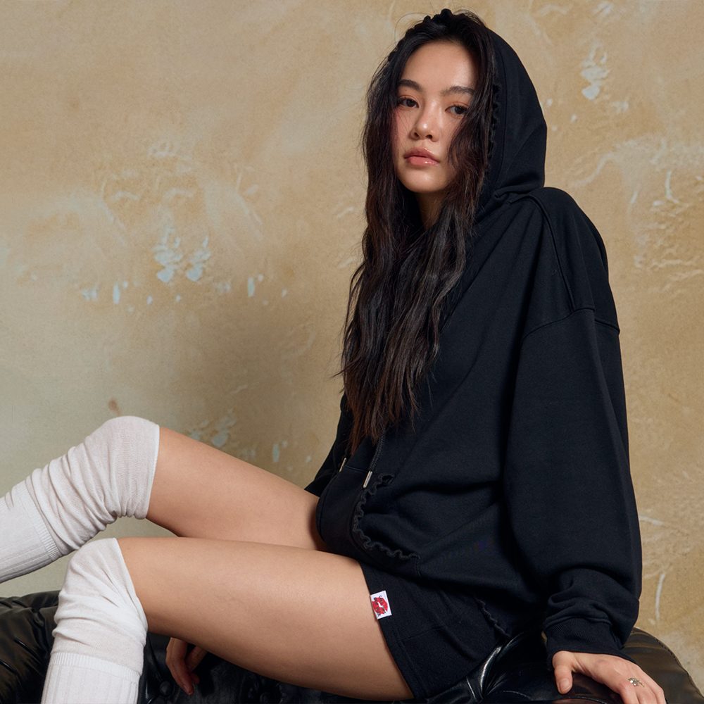 DETAIL -YKK 투웨이 지퍼 사용 -전면부 콜아웃뉴이어 자수 디테일 적용 -후드 및 포켓 러플 디테일 적용 -엔자임 워싱 가공처리로 부드러운 터치감을 구현 CARE 첫 세탁은 드라이클리닝을 권장드리며, 워싱 가공 제품은 세탁 시 물빠짐이 있을 수 있으므로 단독 세탁을 권장합니다. 밝은 컬러의 의류와 함께 착용 시 이염이 발생할 수 있으니 주의해 주세요. 체질에 따라 땀이나 수분에 장시간 노출될 경우 변색 또는 이염이 발생할 수 있으니 착용 및 보관 시 주의 바랍니다. 건조기 사용은 피해주세요. 제품에 사용된 금속,자수,프린트 등 장식 부자재는 마찰 및 세탁에 손상될 수 있습니다. 보관 시에는 형태 유지를 위해 접어서 보관하는 것을 권장합니다. 반드시 의류 안쪽 케어라벨을 확인 후 세탁 및 착용 바랍니다. * 가공 특성상 발생할 수 있는 미세한 스크래치,색감 차이 등은 불량이 아니며,사용자의 세탁 및 취급 부주의로 인한 손상은 교환/환불 사유가 되지 않습니다.
