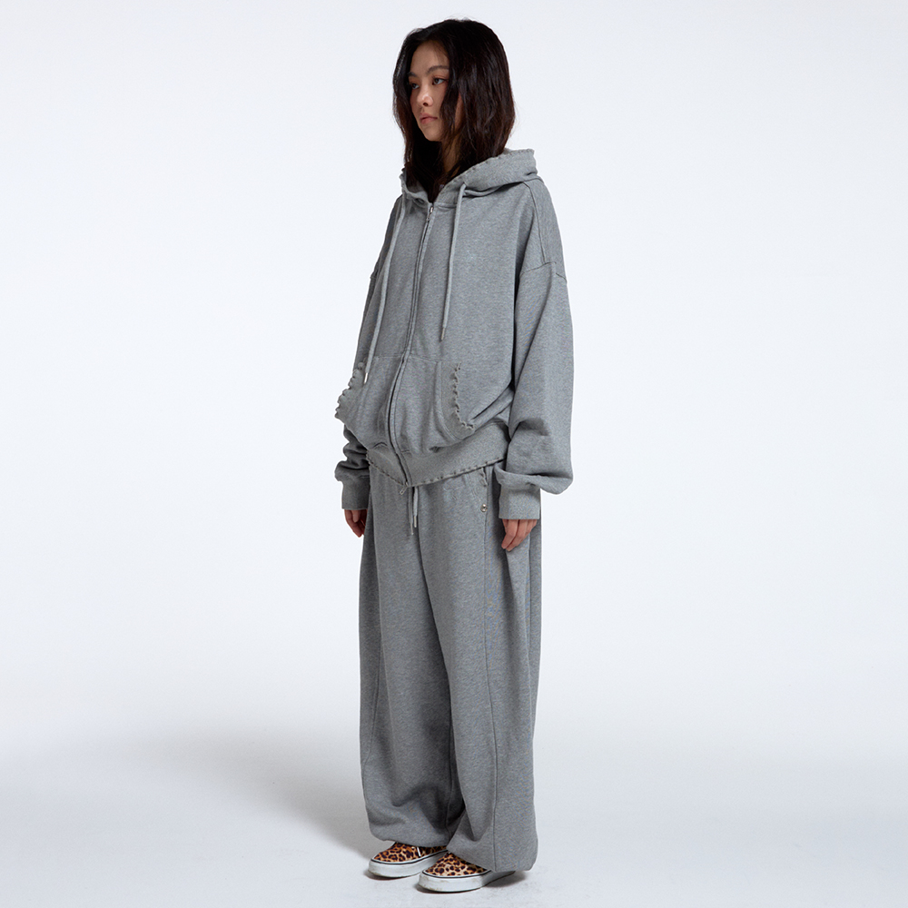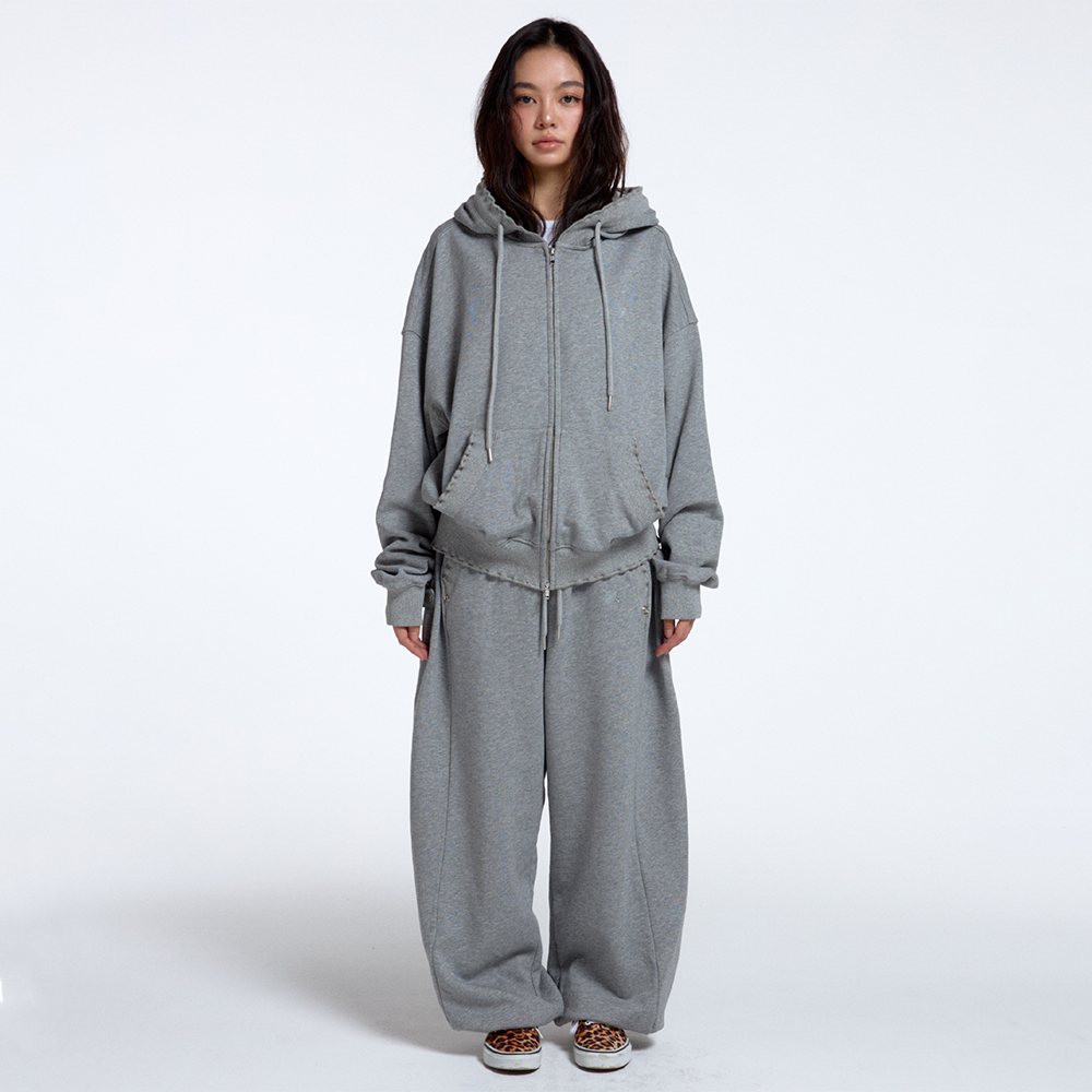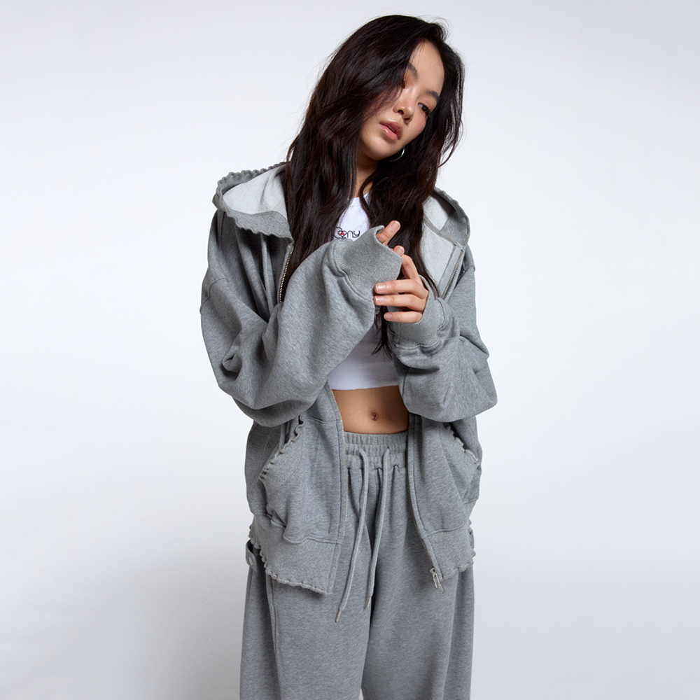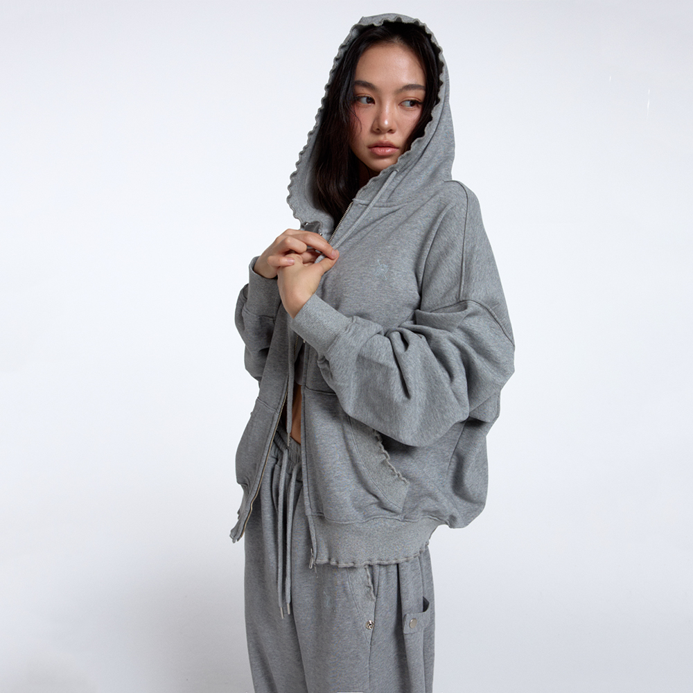 DETAIL -YKK 투웨이 지퍼 사용 -전면부 콜아웃뉴이어 자수 디테일 적용 -후드 및 포켓 러플 디테일 적용 -엔자임 워싱 가공처리로 부드러운 터치감을 구현 CARE 첫 세탁은 드라이클리닝을 권장드리며, 워싱 가공 제품은 세탁 시 물빠짐이 있을 수 있으므로 단독 세탁을 권장합니다. 밝은 컬러의 의류와 함께 착용 시 이염이 발생할 수 있으니 주의해 주세요. 체질에 따라 땀이나 수분에 장시간 노출될 경우 변색 또는 이염이 발생할 수 있으니 착용 및 보관 시 주의 바랍니다. 건조기 사용은 피해주세요. 제품에 사용된 금속,자수,프린트 등 장식 부자재는 마찰 및 세탁에 손상될 수 있습니다. 보관 시에는 형태 유지를 위해 접어서 보관하는 것을 권장합니다. 반드시 의류 안쪽 케어라벨을 확인 후 세탁 및 착용 바랍니다. * 가공 특성상 발생할 수 있는 미세한 스크래치,색감 차이 등은 불량이 아니며,사용자의 세탁 및 취급 부주의로 인한 손상은 교환/환불 사유가 되지 않습니다.