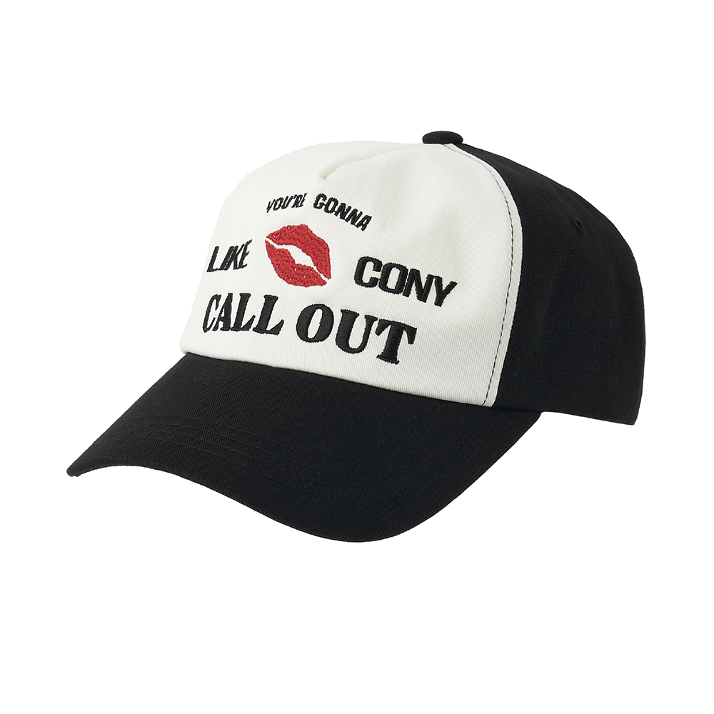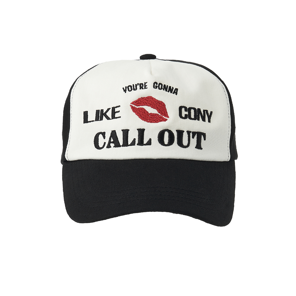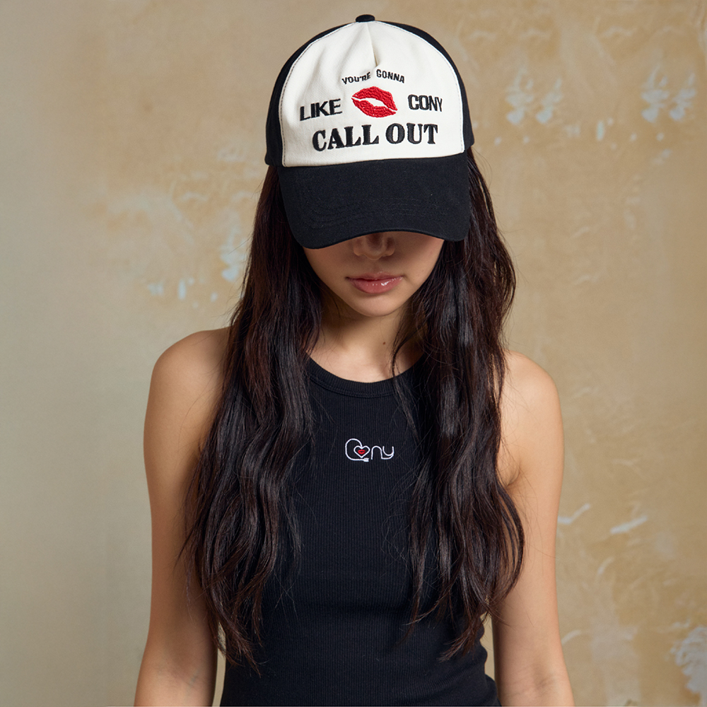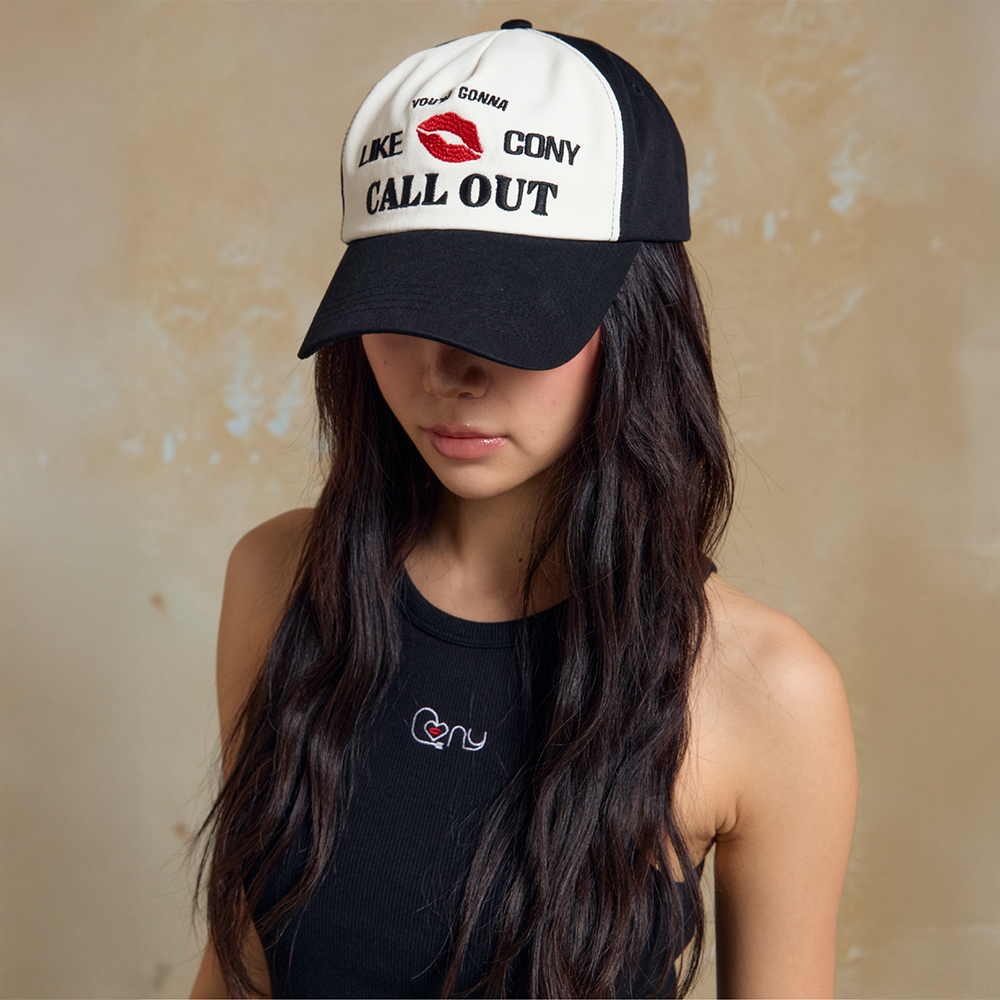 DETAIL -바이오 워싱처리된 고밀도 트월 원단 사용 -6-PANEL 배색 볼캡 -콜아웃뉴이어 레터링 및 시그니처 립 포인트 자수 -깊은 쉐입과 여유로운 핏, 후면 버클로 둘레 조절 가능
