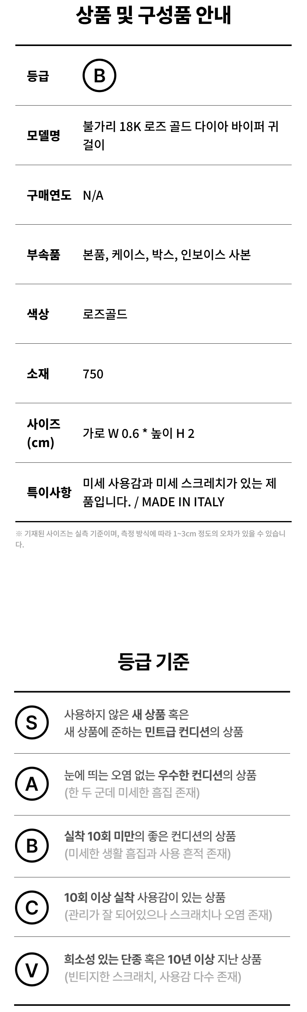 불가리 18K 로즈 골드 다이아 바이퍼 귀걸이 D-B51021