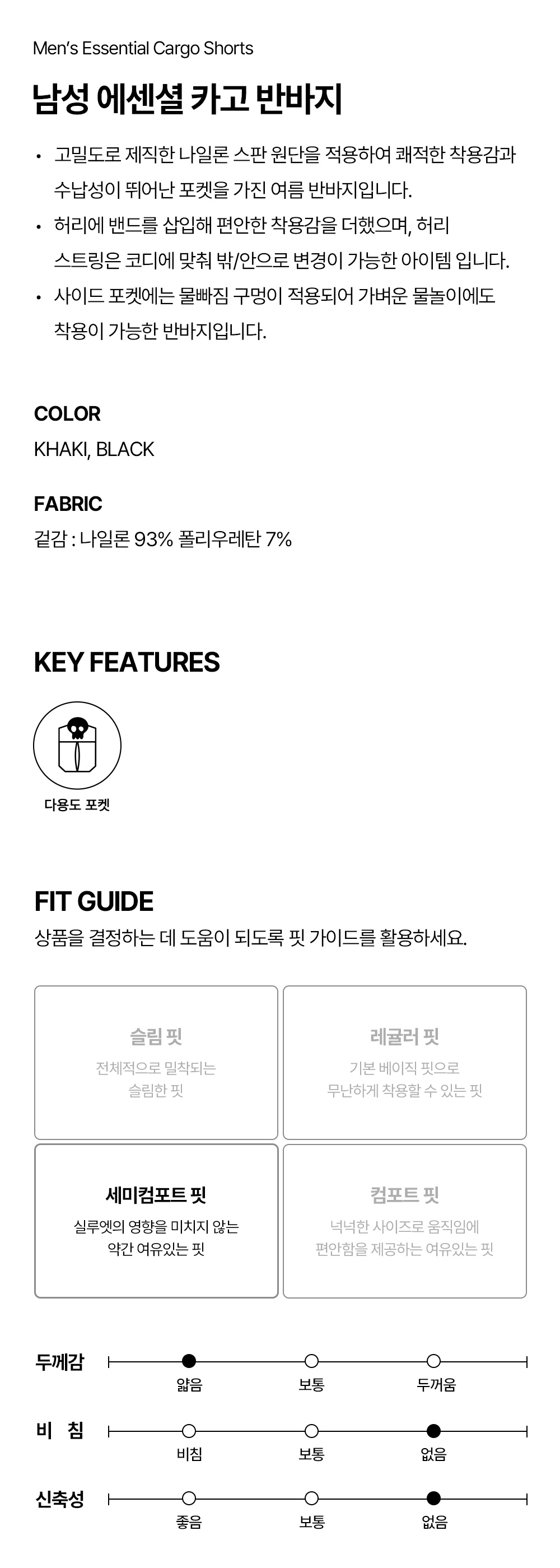 하이드로겐 남성 에센셜 카고 반바지 블랙