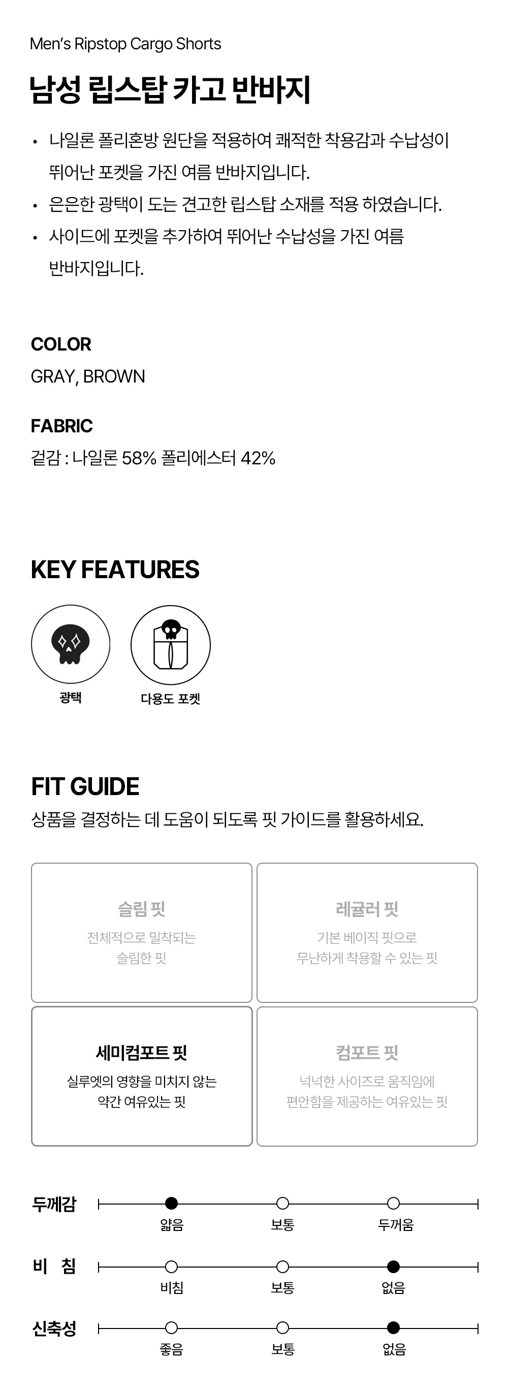 하이드로겐 남성 립스탑 카고 반바지 그레이