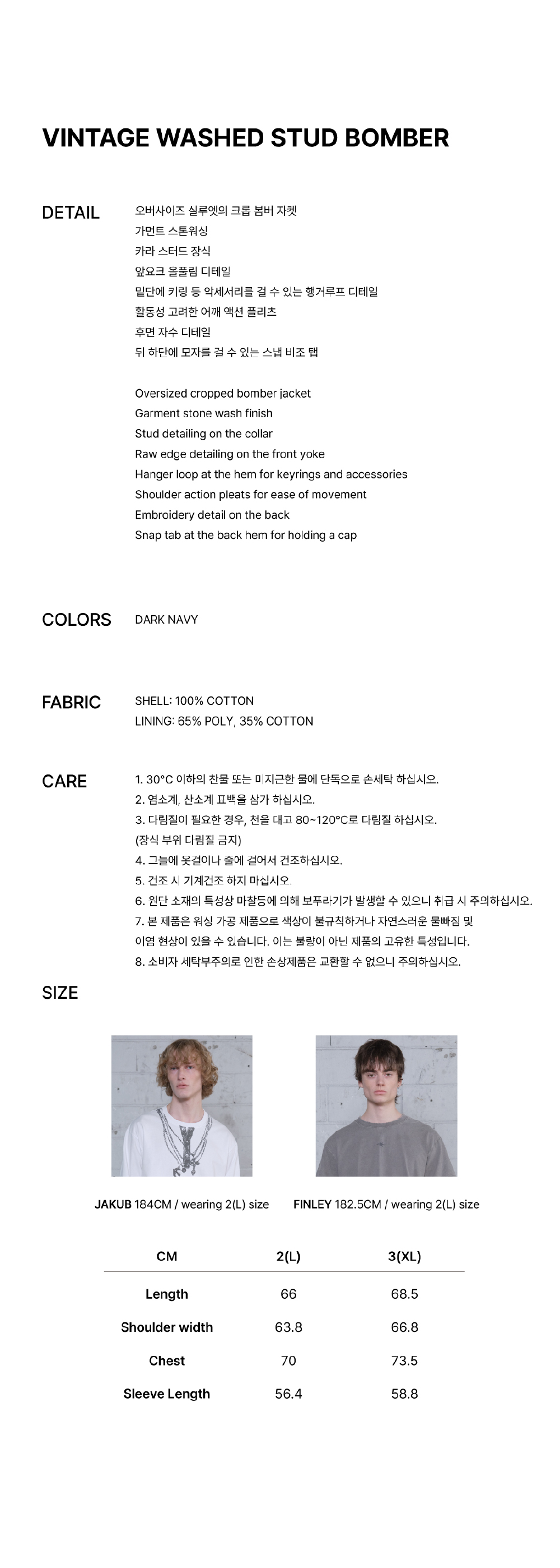 메아 빈티지 워시드 스터드 봄버 다크 네이비