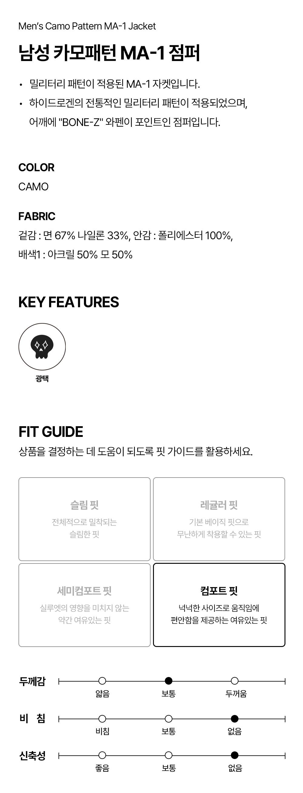 하이드로겐 남성 카모패턴 MA-1 점퍼 ZZ