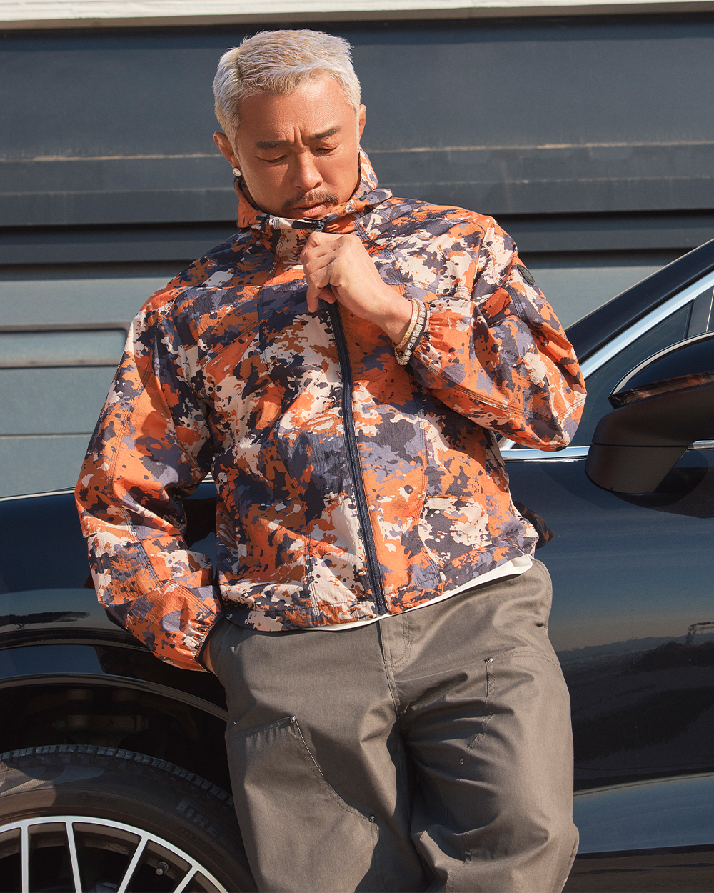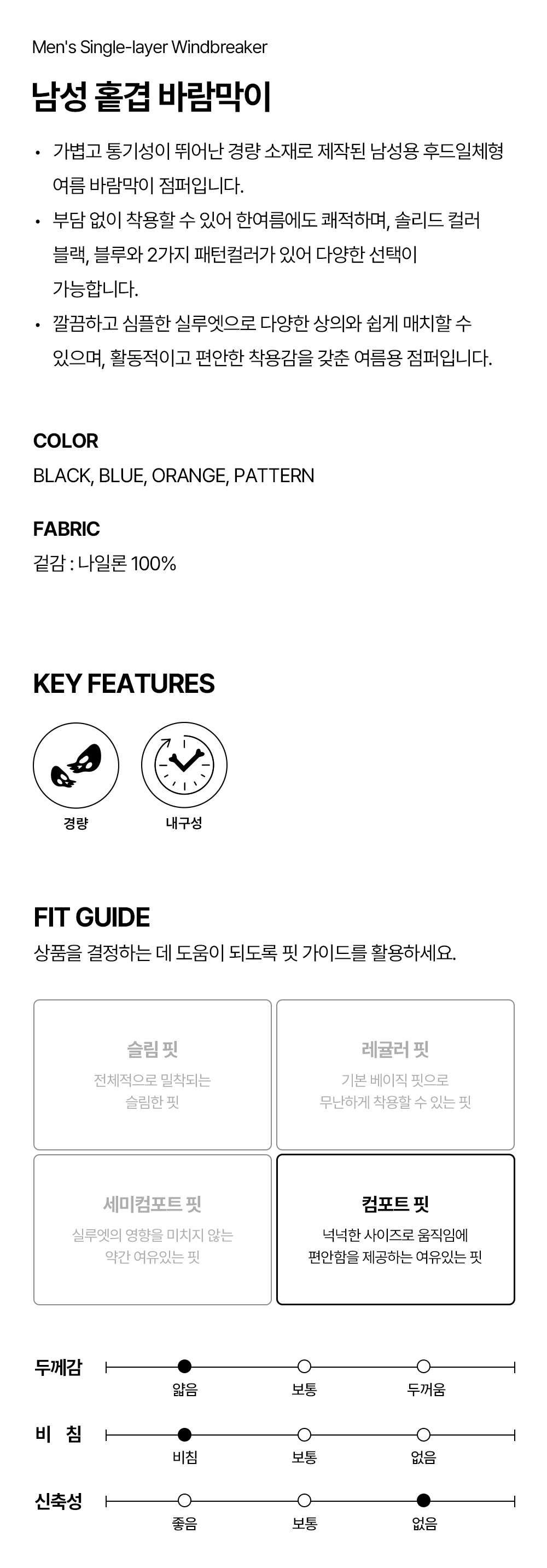 하이드로겐 남성 홑겹 바람막이 오렌지