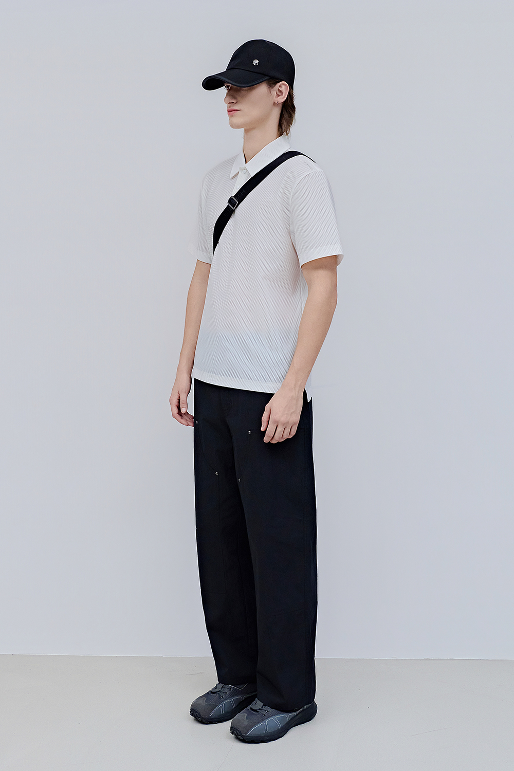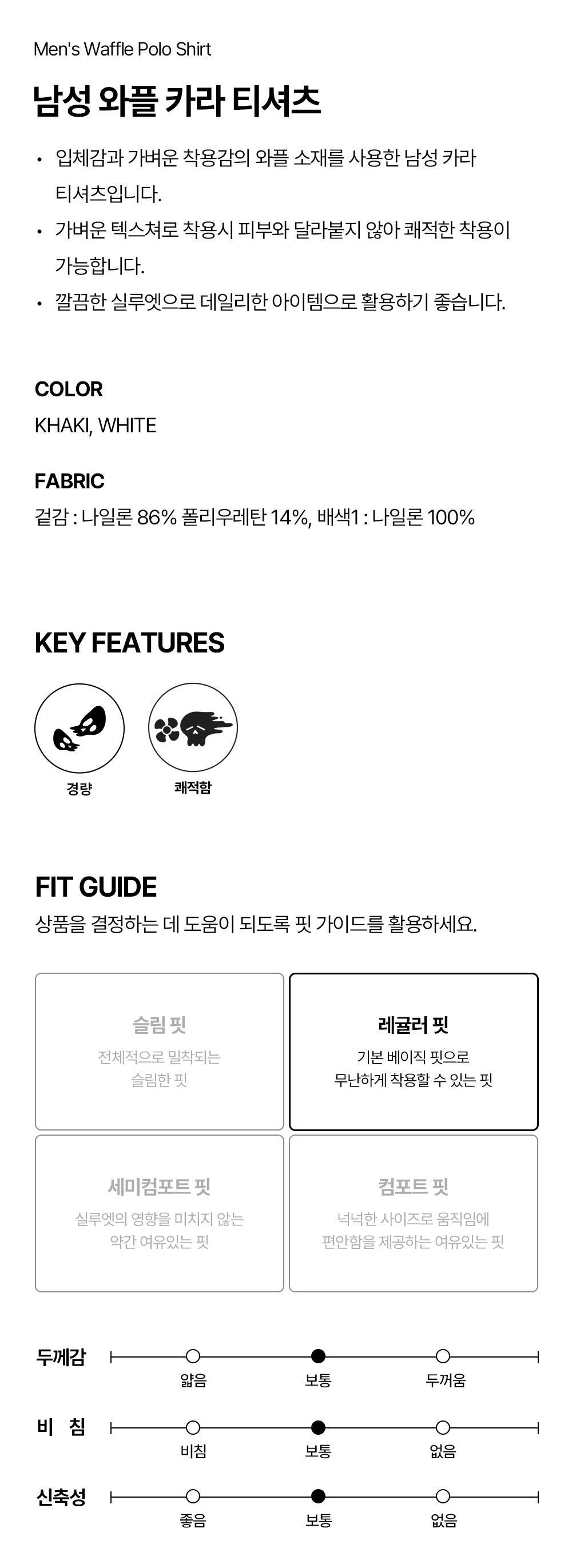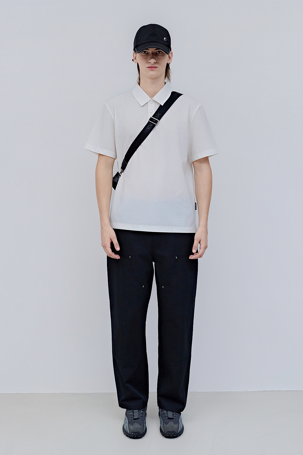 하이드로겐 남성 와플 카라 티셔츠 화이트