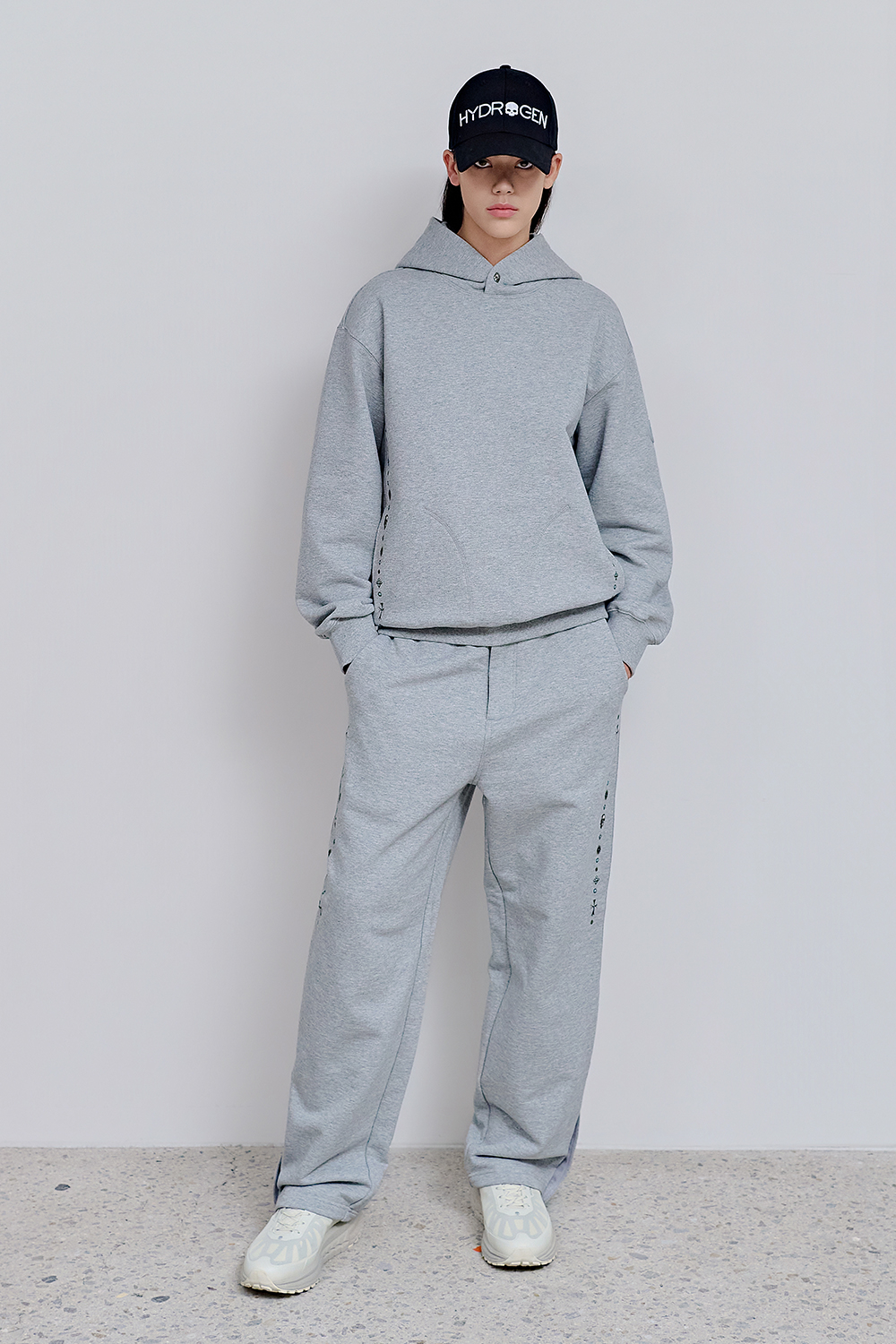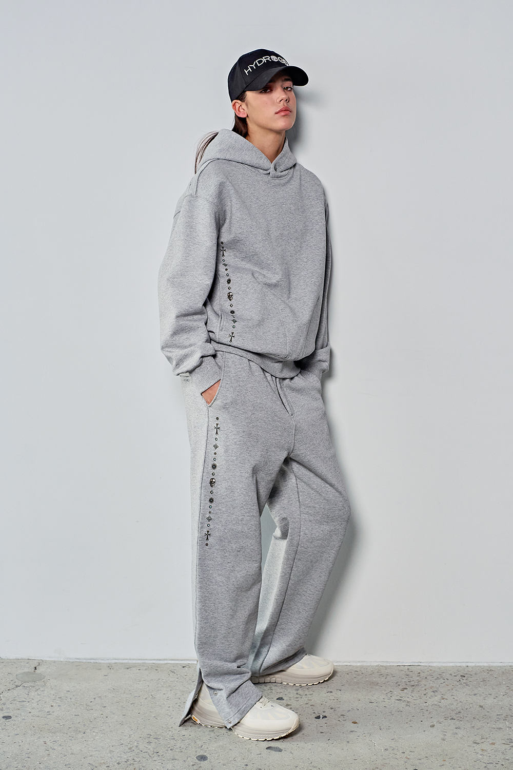 하이드로겐 유니 콘초 그래픽 후드티 멜란지 그레이