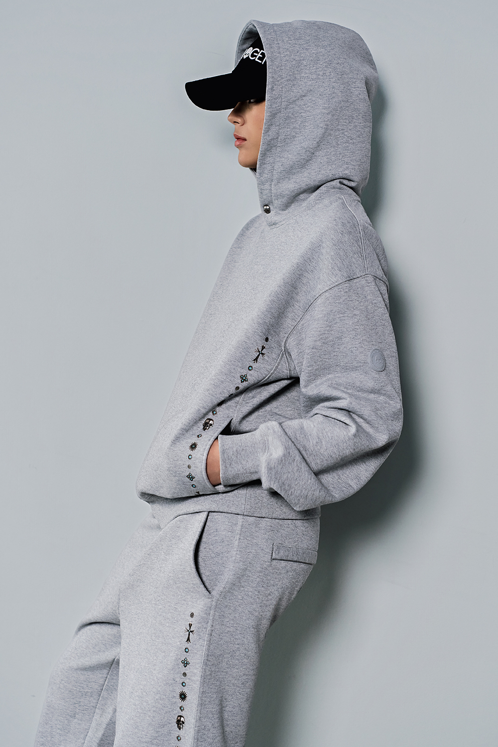 HYDROGEN Unisex Concho Graphic Hoodie Melange Grey