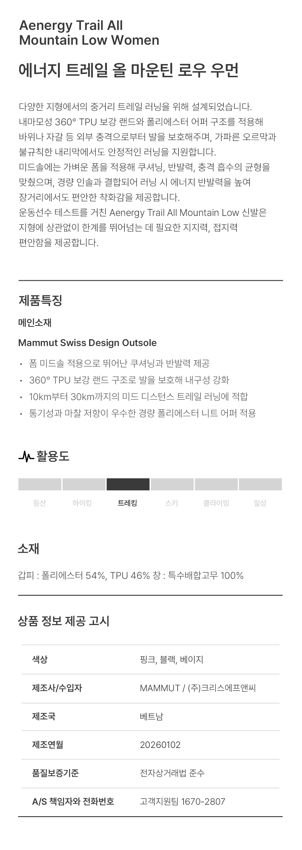 마무트 에너지 트레일 올 마운틴 로우 우먼 핑크