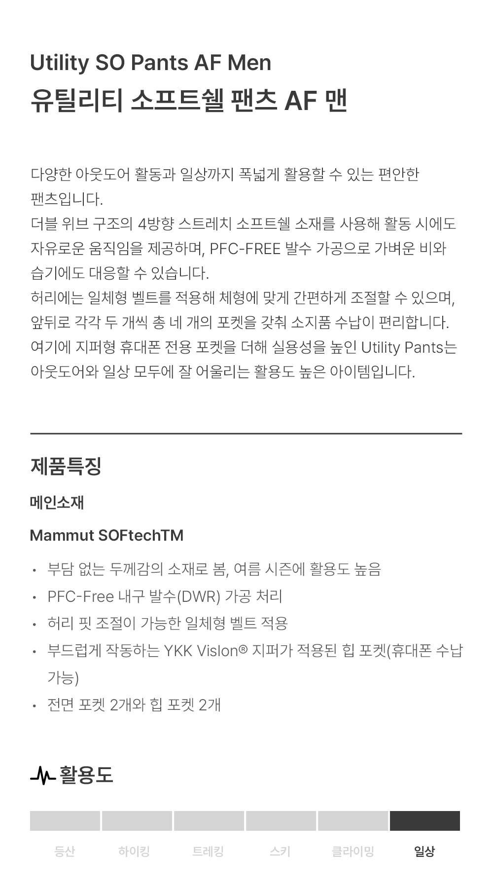 마무트 유틸리티 소프트쉘 팬츠 AF 맨 블랙