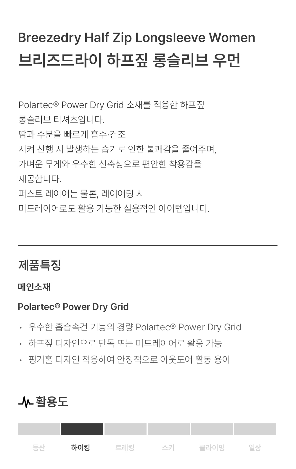 마무트 브리즈드라이 하프짚 롱슬리브 우먼 블랙