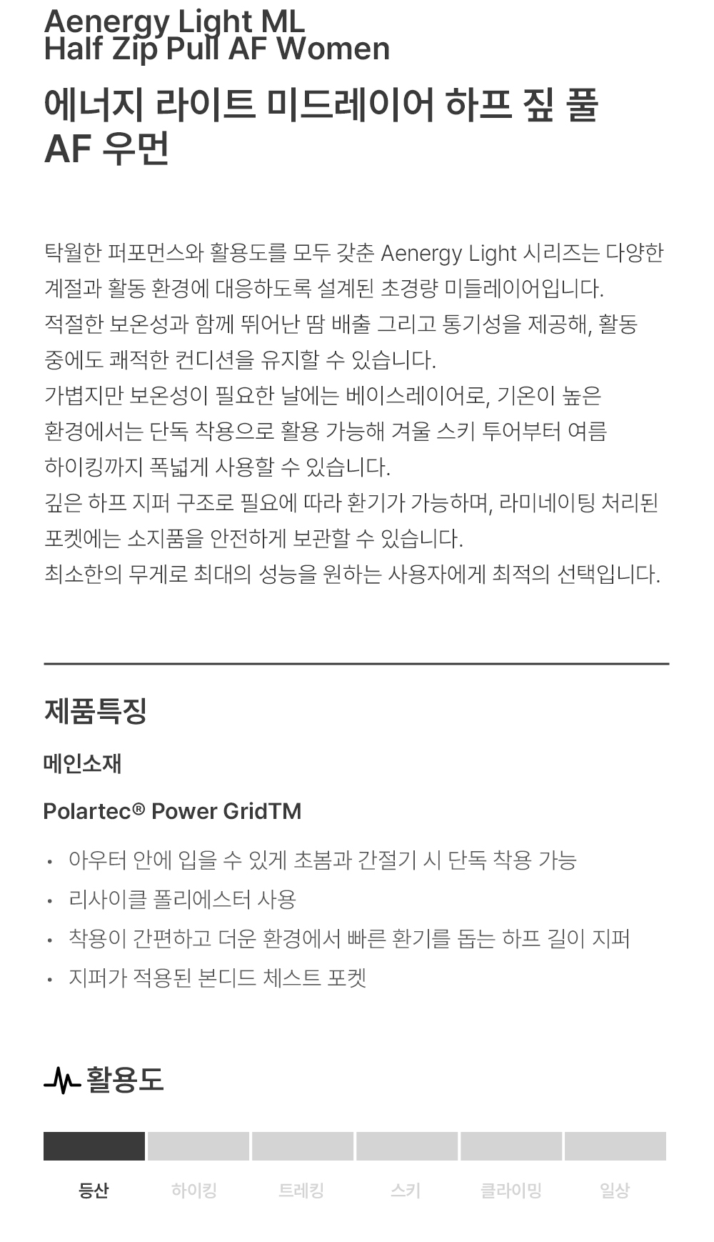 마무트 에너지 라이트 미드레이어 하프집업 풀 AF 우먼 다크 블루