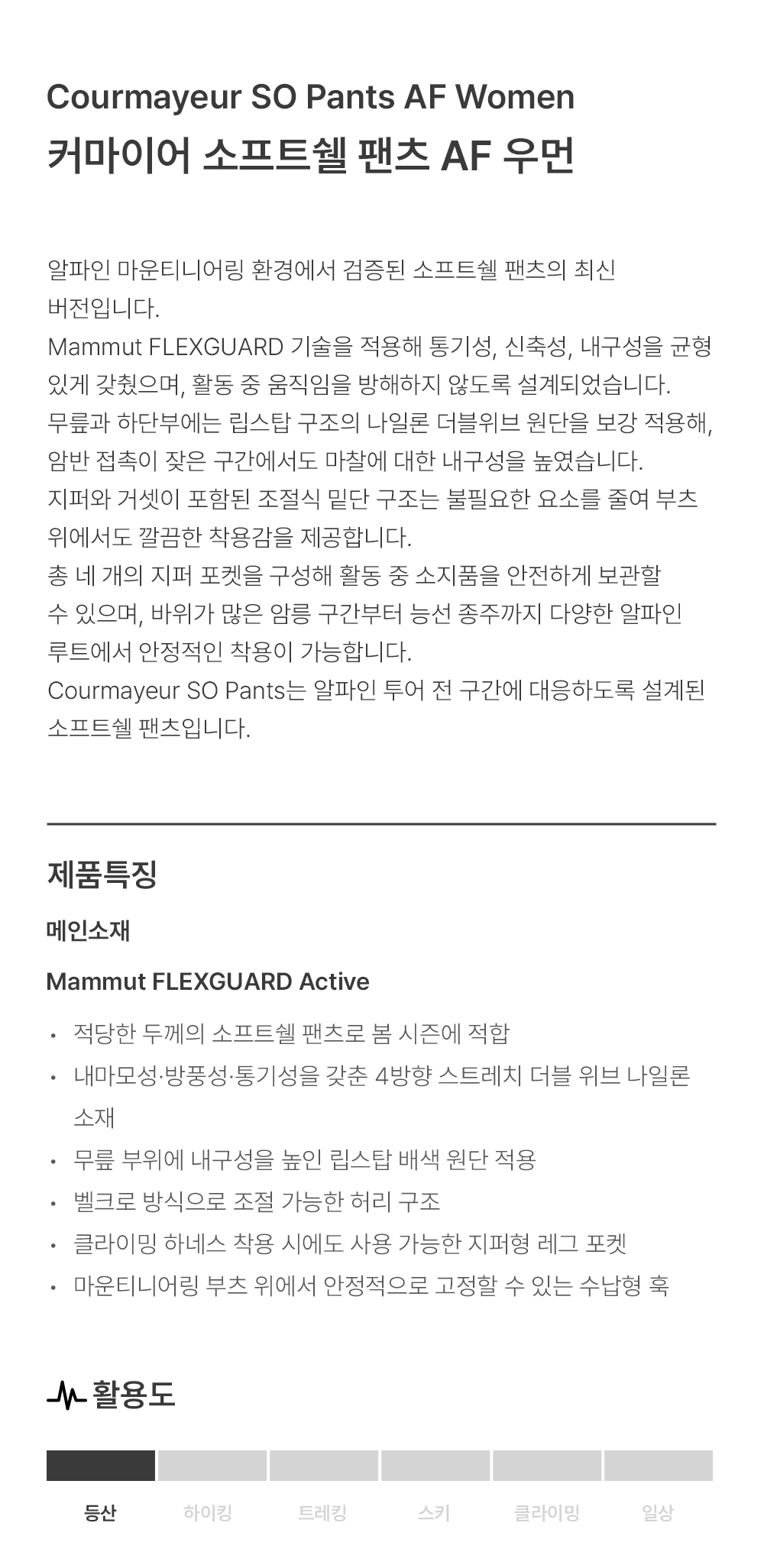 마무트 커마이어 소프트쉘 팬츠 AF 우먼 네이비
