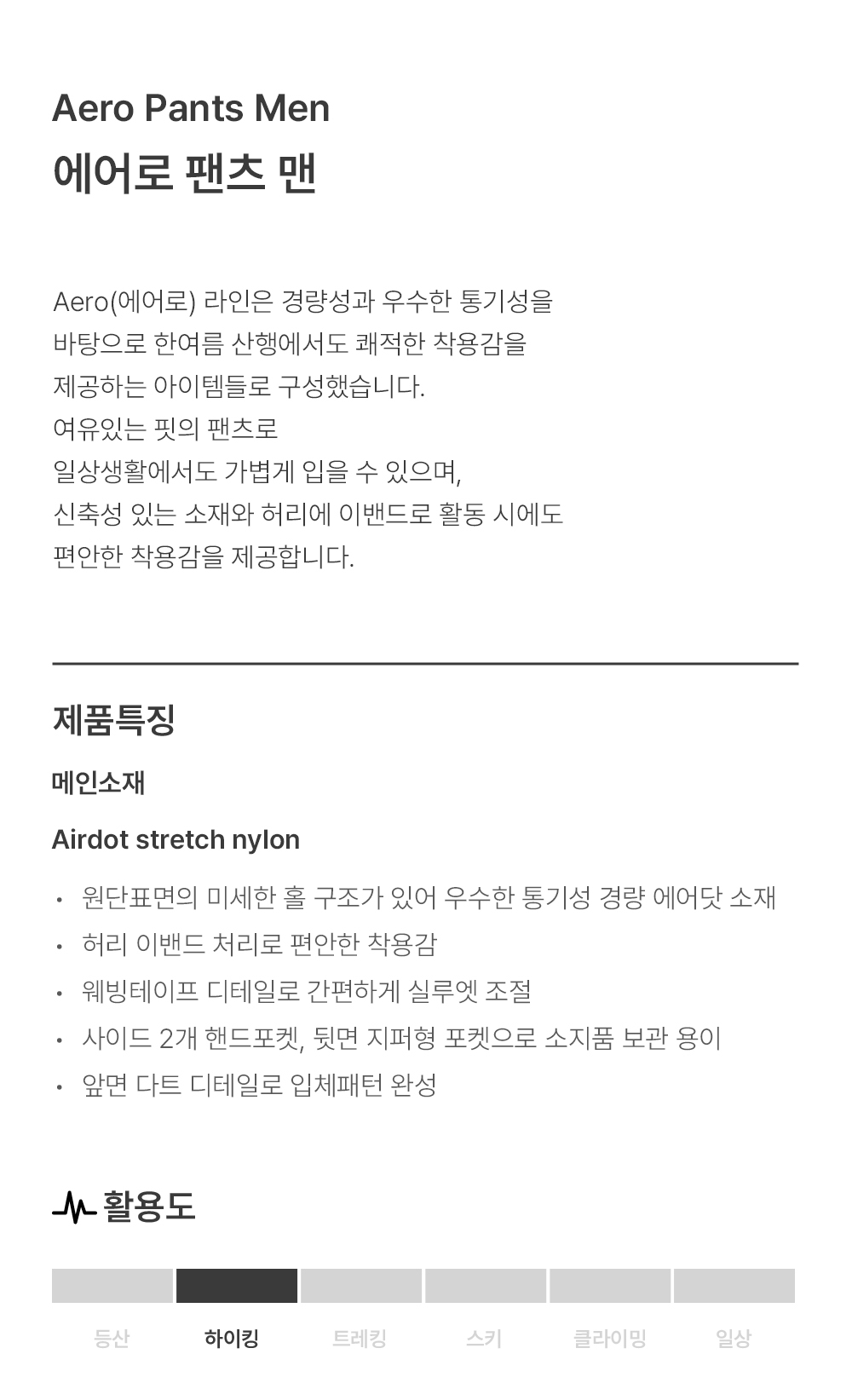 마무트 에어로 팬츠 맨 블랙
