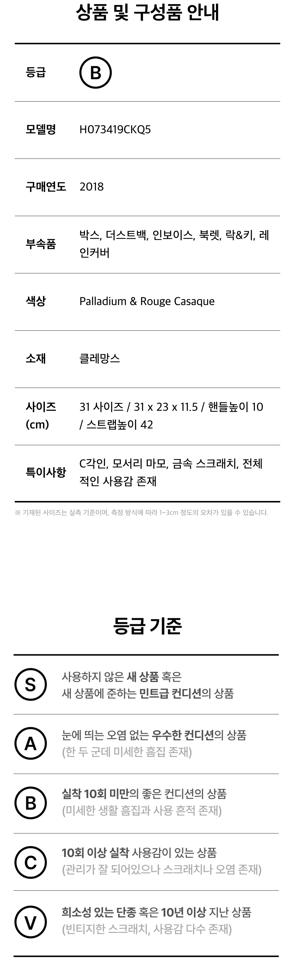 에르메스 H073419CKQ5 볼리드 31 백 클레망스 팔라디움 루즈 카사크 C각인