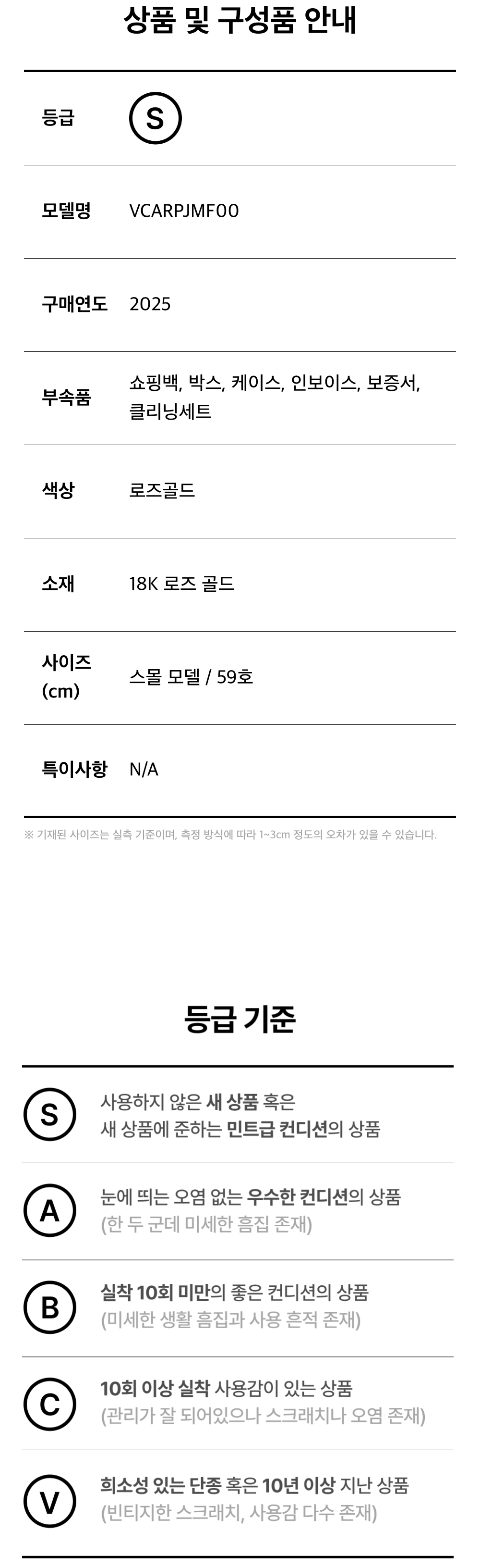 반클리프 VCARPJMF00 뻬를리 골드 비즈 링 스몰 18K 로즈 골드 59