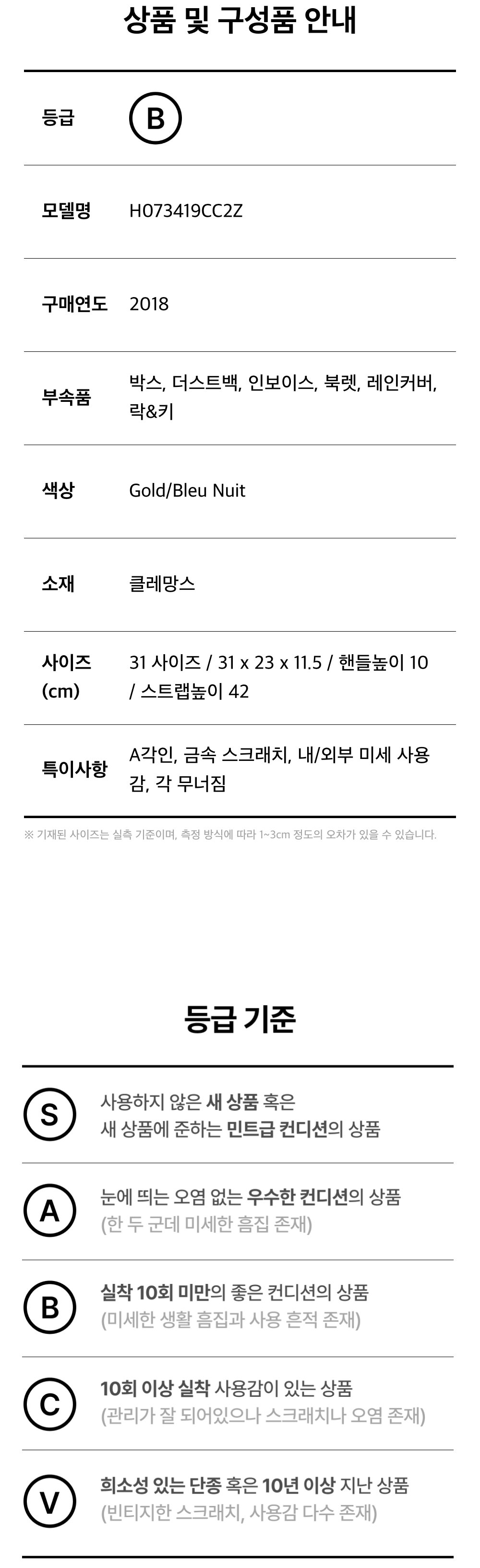 에르메스 H073419CC2Z 볼리드 31 백 클레망스 블루 뉘 & 골드 A각인