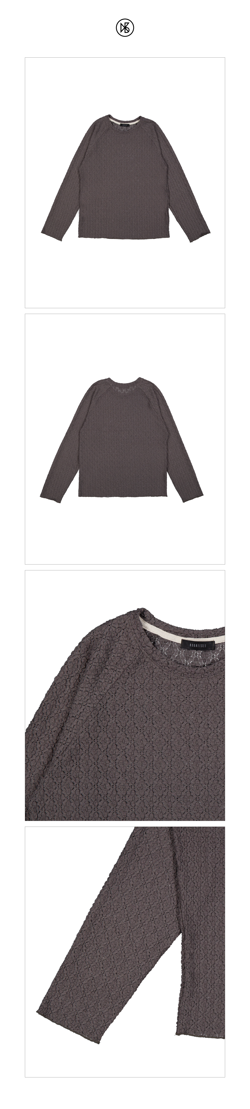 Crumble Lace Tee FABRIC Polyester 97%, Span 3% DETAIL -스판 레이스 원단의 래글런 티셔츠 -뒷넥 헤린본테이프 작업으로 늘어짐 방지 -루즈핏 사이즈 SIZE -원사이즈 총장 70cm, 가슴 53cm , 밑단 50cm, 소매장 78cm *같은 제품이라도 재는 위치에 따라 오차가 있을 수 있습니다* *해상도에 따라 화면에서 보이는 것과 색감차이가 날 수 있습니다. * WASHING INSTRUCTIONS -건조기금지 -드라이크리닝 MODEL Dudu, Height 159cm