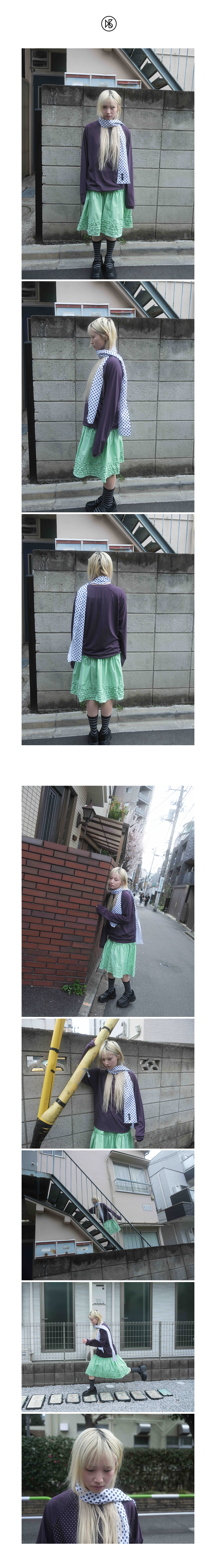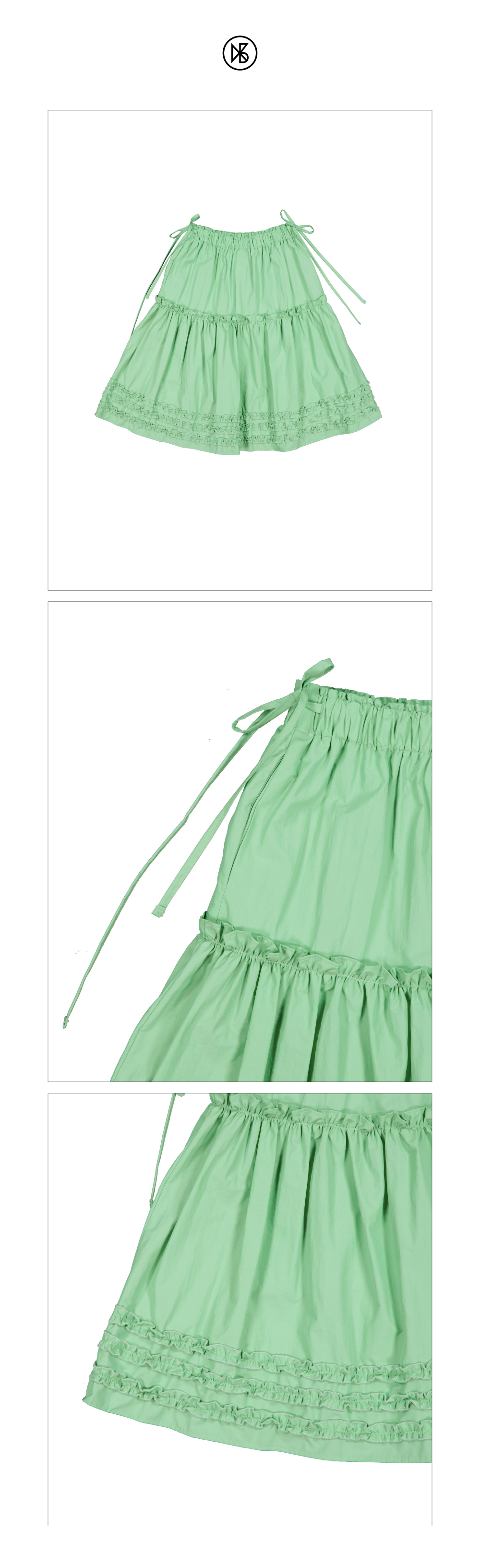 Katie Frill Midi Skirt FABRIC Nylon 70%, Cotton 30% DETAIL -나일론 코튼 혼방 소재의 프릴 미디 스커트 -입체적인 프릴이 밑단 전체를 둘러싼 디자인 -힙 부분 전체 셔링으로 풍성한 디자인 -허리 전체밴딩, 양 사이드 끈 디테일 -사이드포켓, 안감있음 -55~66까지 추천 SIZE -원사이즈 총장 61cm, 허리 31cm(밴딩) 엉덩이 57cm, 밑단 100cm *같은 제품이라도 재는 위치에 따라 오차가 있을 수 있습니다* *해상도에 따라 화면에서 보이는 것과 색감차이가 날 수 있습니다. * WASHING INSTRUCTIONS -건조기금지 -드라이크리닝 MODEL Dudu, Height 159cm