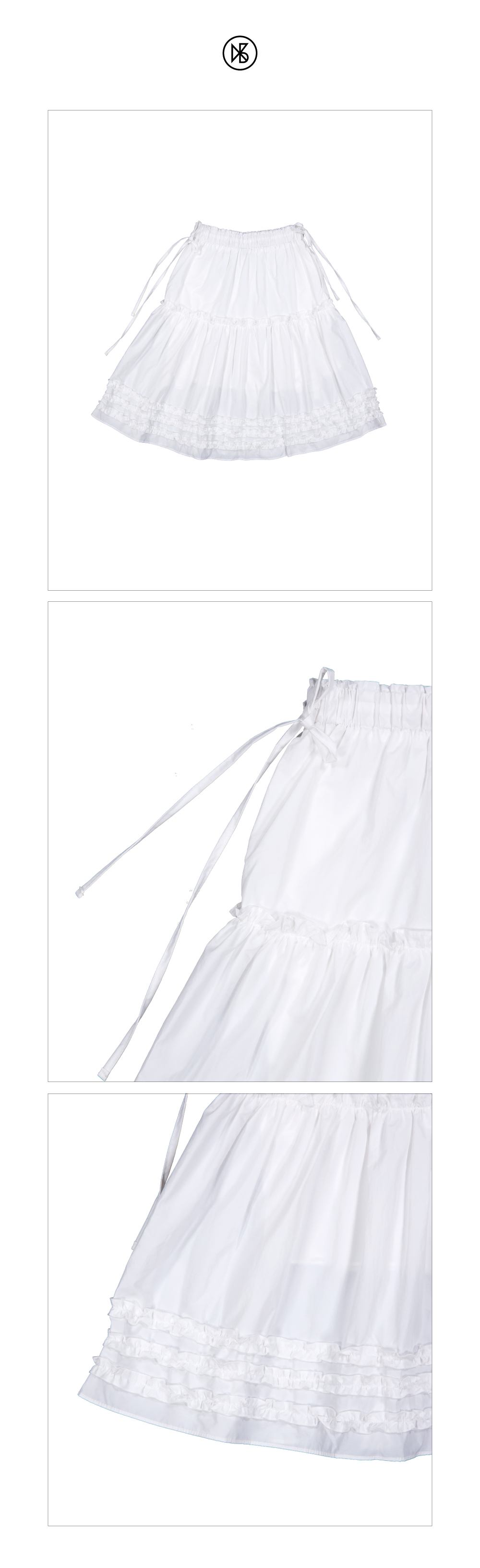 Katie Frill Midi Skirt FABRIC Nylon 70%, Cotton 30% DETAIL -나일론 코튼 혼방 소재의 프릴 미디 스커트 -입체적인 프릴이 밑단 전체를 둘러싼 디자인 -힙 부분 전체 셔링으로 풍성한 디자인 -허리 전체밴딩, 양 사이드 끈 디테일 -사이드포켓, 안감있음 -55~66까지 추천 SIZE -원사이즈 총장 61cm, 허리 31cm(밴딩) 엉덩이 57cm, 밑단 100cm *같은 제품이라도 재는 위치에 따라 오차가 있을 수 있습니다* *해상도에 따라 화면에서 보이는 것과 색감차이가 날 수 있습니다. * WASHING INSTRUCTIONS -건조기금지 -드라이크리닝 MODEL Dudu, Height 159cm