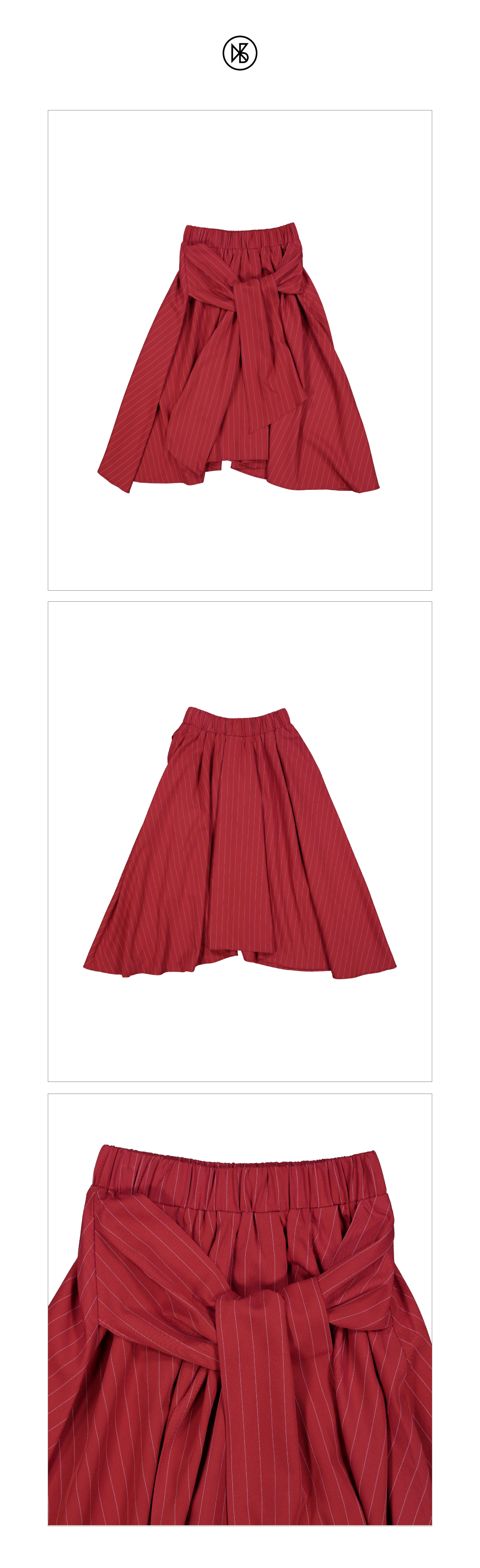 Stripe Tie Skirt FABRIC Polyester 70%, Rayon 27%, Span 3% DETAIL -스트라이프 TR 원단 -언발란스한 기장 -허리 전체밴딩 -안감있음 -양 사이드 묶을 수 있는 배색 끈 디테일 -55~66까지 추천 SIZE -원사이즈 총장 62-75cm, 허리 31cm(밴딩) 엉덩이 78cm, 밑단 150cm *같은 제품이라도 재는 위치에 따라 오차가 있을 수 있습니다* *해상도에 따라 화면에서 보이는 것과 색감차이가 날 수 있습니다. * WASHING INSTRUCTIONS -건조기금지 -드라이크리닝 MODEL Dudu, Height 159cm