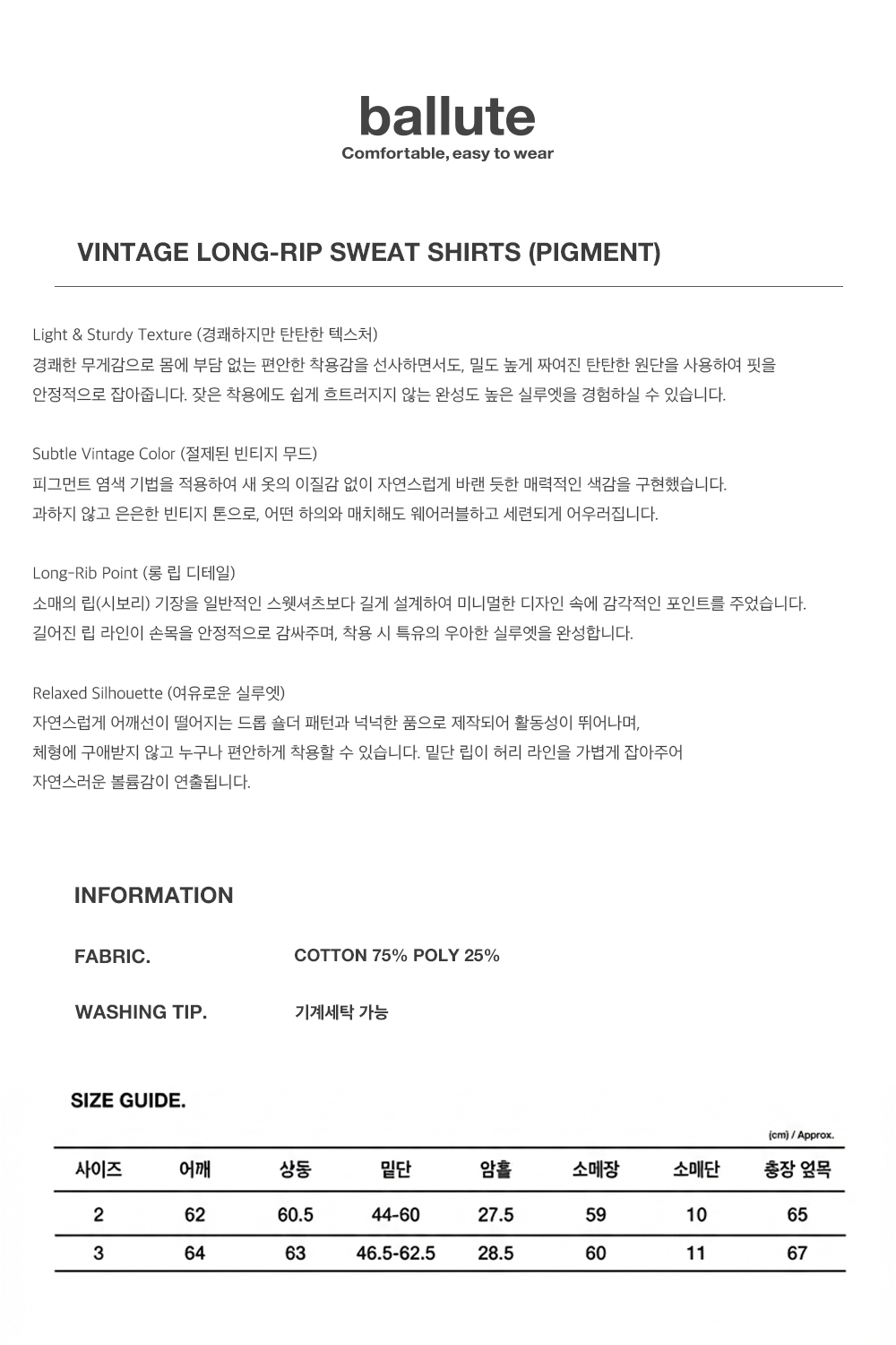 발루트 빈티지 롱립 스웻셔츠 차콜 피그먼트