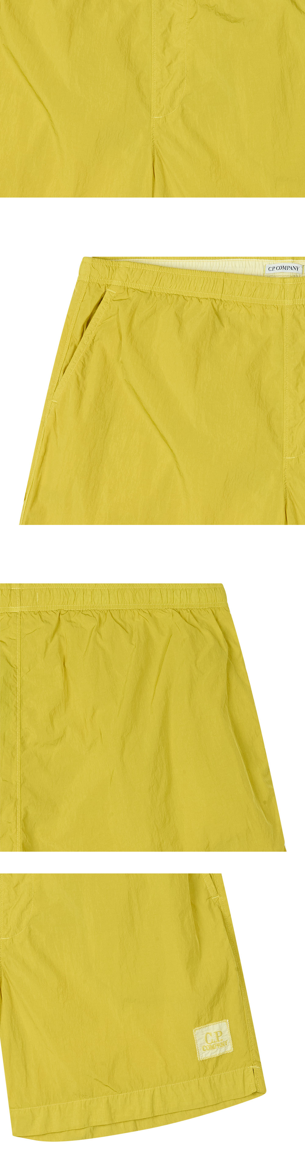 C.P. 컴퍼니 에코 크롬 R 스윔 쇼츠 앤티크 모스 입니다. - 왼쪽 하단 C.P. 컴퍼니 옐로우 패치 로고 디테일 - 신축성 있는 엘라스틱 웨이스트 밴드 디자인 - 전면 양사이드 슬릿 포켓 구성 - 가먼트 다잉 처리를 통한 독특한 색감과 질감 - 내부 메쉬 브리프 안감 포함