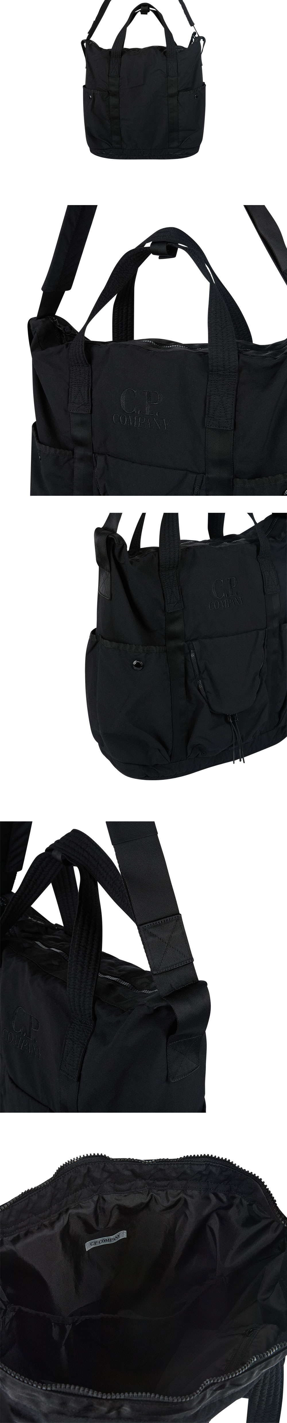 C.P. 컴퍼니 트윌 토트 백 블랙 입니다. - 전면 중앙 C.P. 컴퍼니 톤온톤 로고 자수 디테일 - 토트 핸들과 조절 가능한 숄더 스트랩의 2-Way 디자인 - 전면과 측면의 다양한 수납용 포켓 구성 - 상단 지퍼 클로저 및 내부 보조 포켓 디테일 - 내구성이 뛰어난 트윌 직조 방식의 텍스처