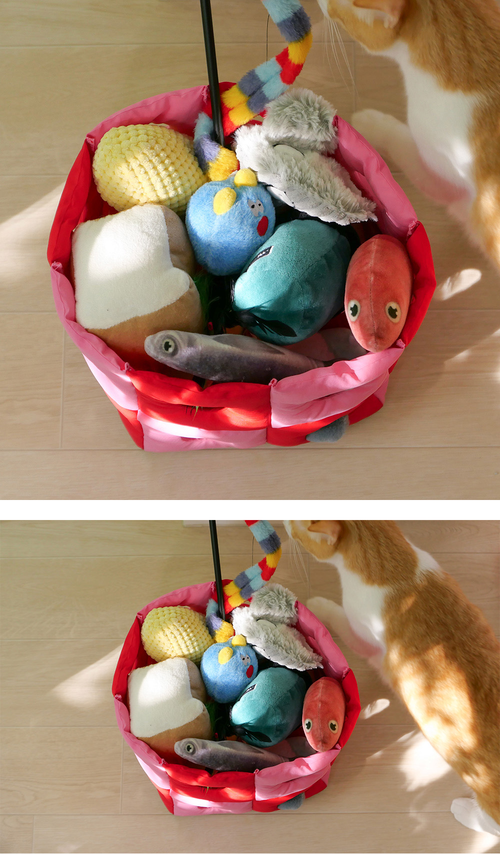 펀칭된 정사각형의 조각을 연결하여 바스켓을 만들었습니다. 1x1보다 훨씬 커진 2X2 사이즈 제품은 아이들 혹은 반려동물의 장난감 바스켓으로 활용할 수 있고 털실 보관 혹은 화분 커버로도 활용할 수 있습니다. 바스켓의 구멍 사이로 물건이 새어 나올까 염려된다면 파우치와 함께 사용해 주세요. 밑면이 사각형으로 제작된 파우치는 바스켓과 따로 또는 함께 사용하기에 좋습니다. 어디서든 활용 가능한 펀칭 바스켓과 함께 공간을 다채롭게 변화시켜 보세요! Let's punch it up! 1 Basket, 1 Pouch - 1 Set
