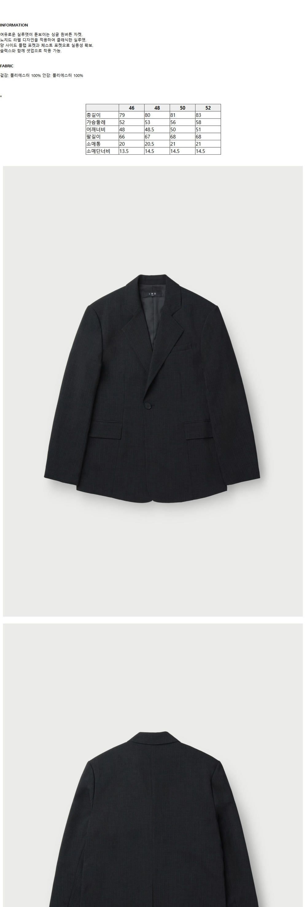 이로 하넬 셋업 원버튼 자켓 블랙