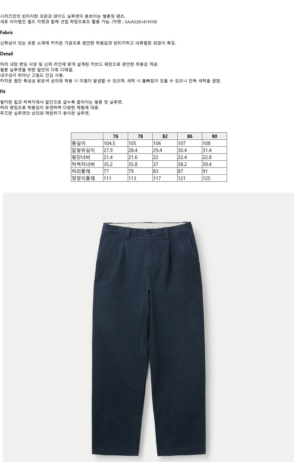 시리즈 셋업 워싱 코튼 뉴 타입 팬츠 벌룬핏 네이비