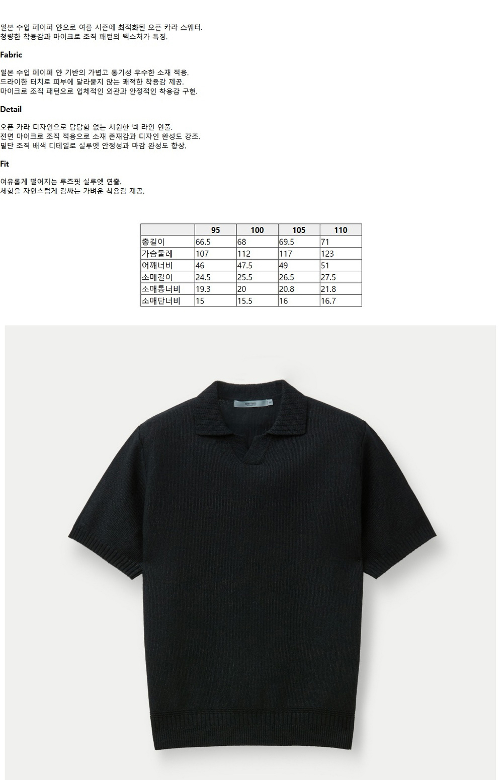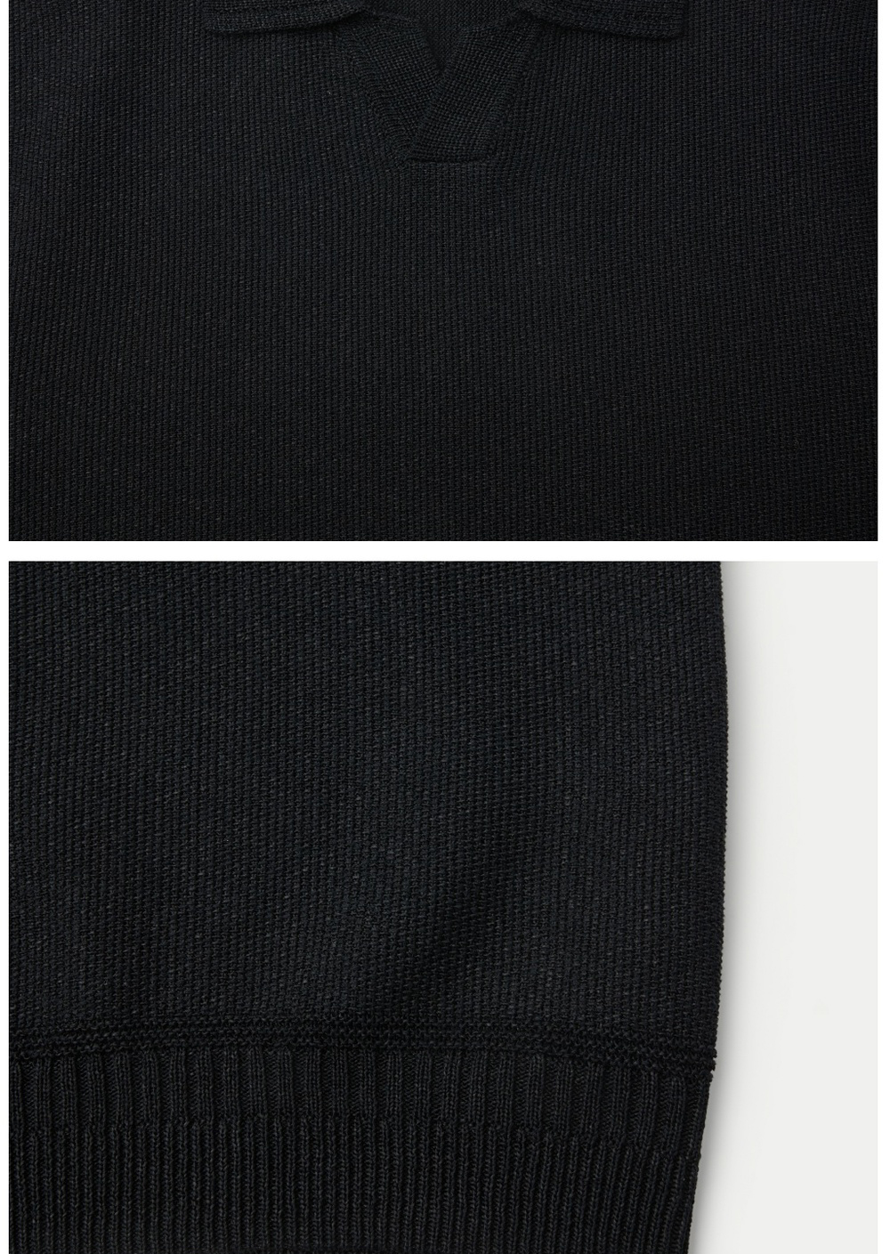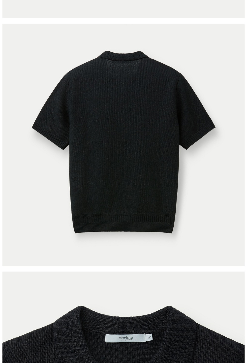 시리즈 텍스처 니트 반팔 오픈 카라 블랙