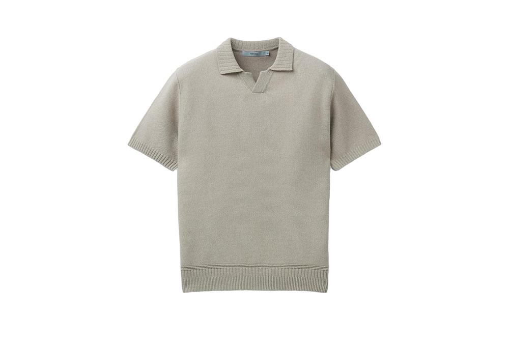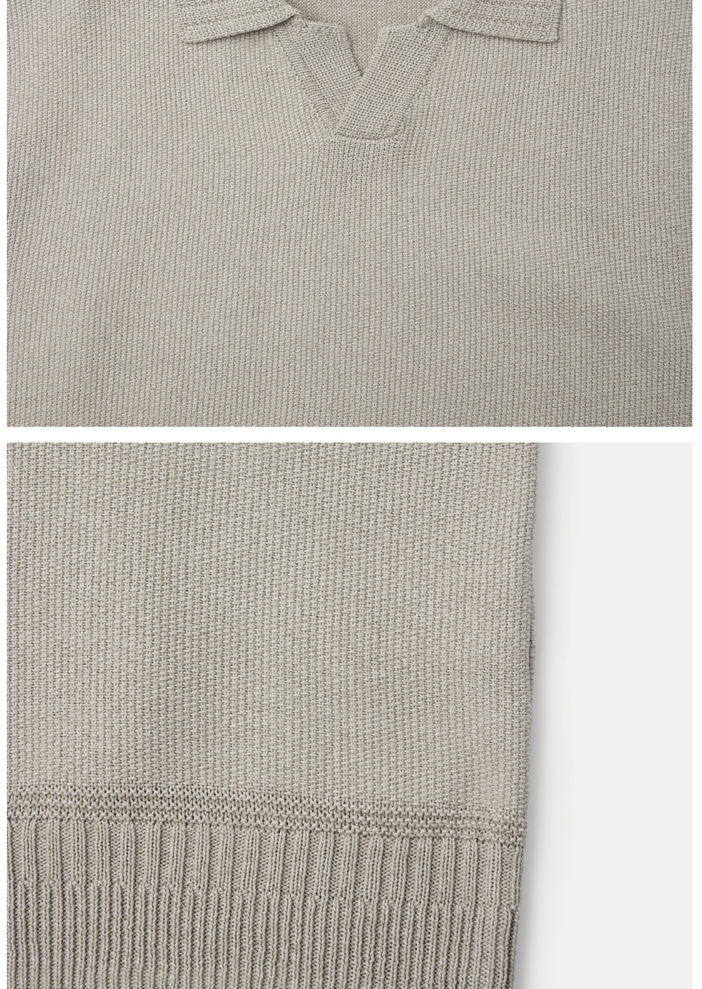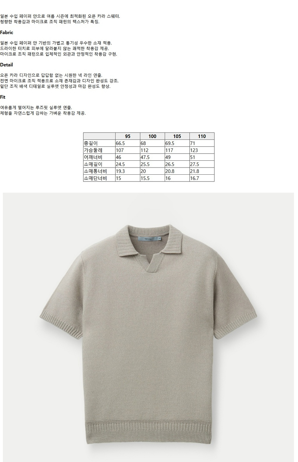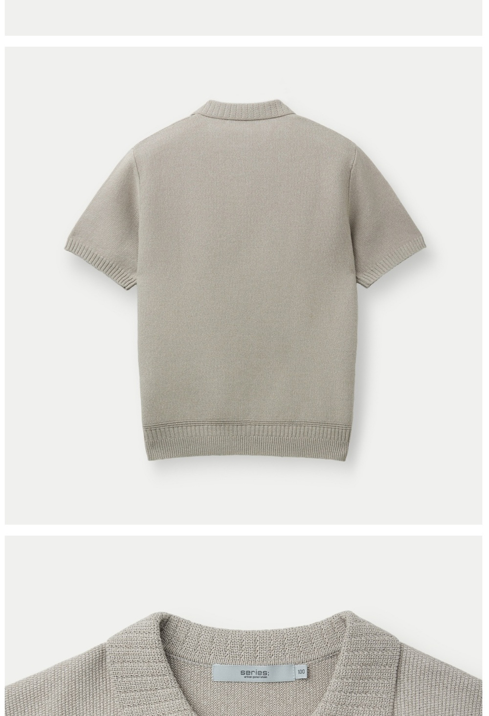 시리즈 텍스처 니트 반팔 오픈 카라 베이지