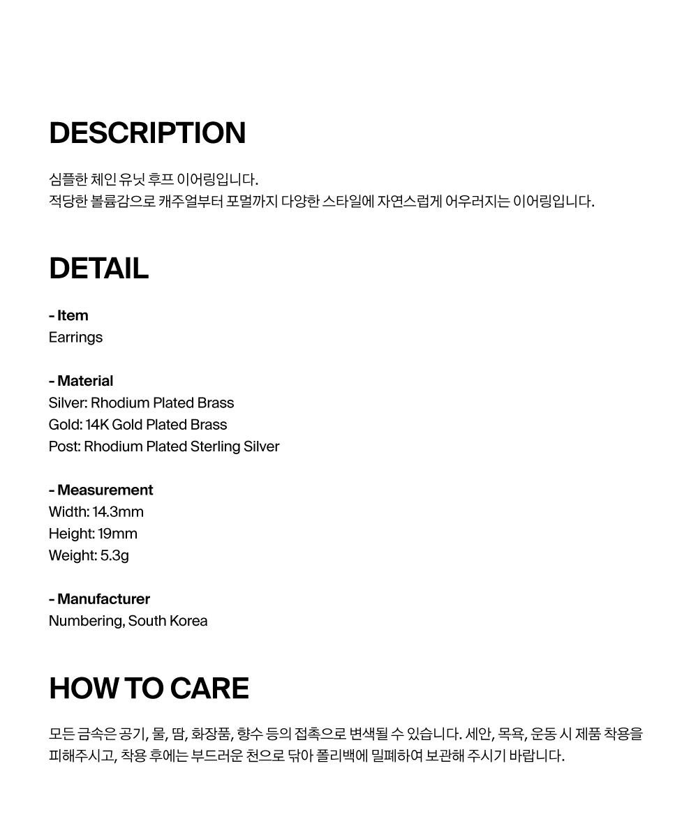 넘버링 #5351 체인 링크 후프 이어링 실버