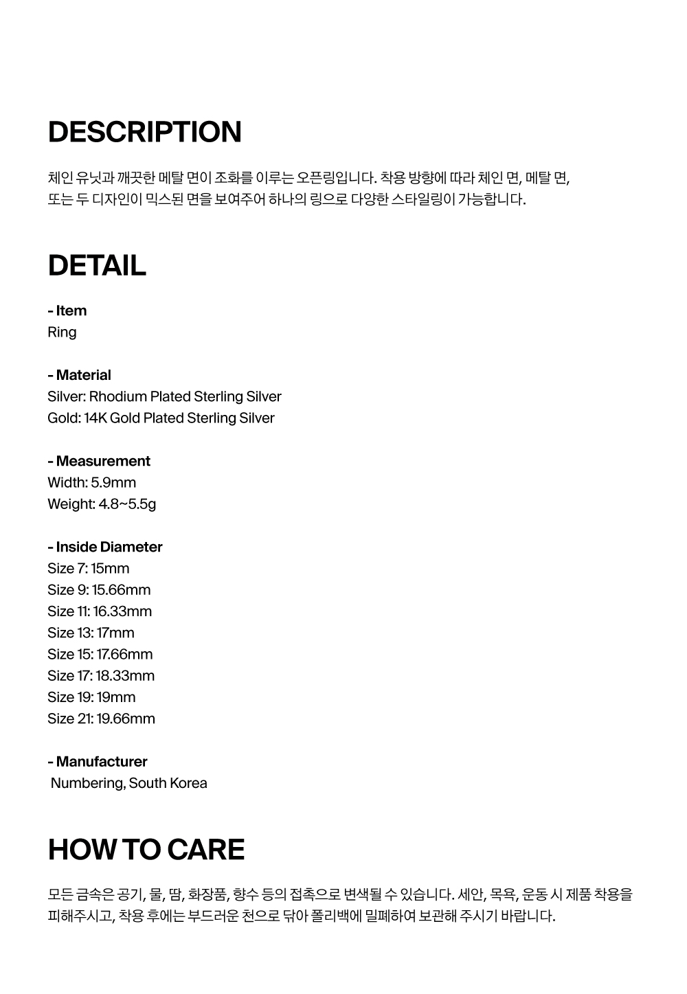 넘버링 #7505 하프 앤 하프 오픈 링 실버