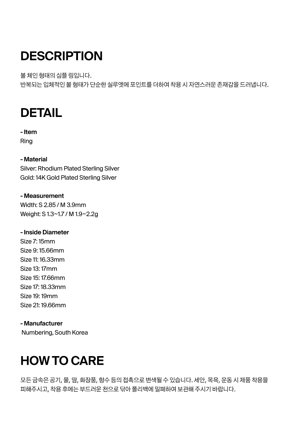 넘버링 #7501 미디엄 볼 체인 링 실버