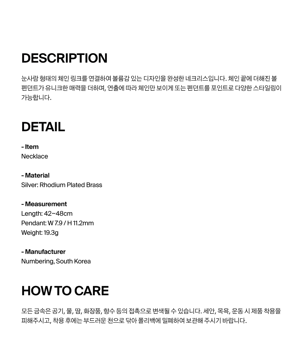 넘버링 #5790 링크드 네크리스 위드 볼 참 실버