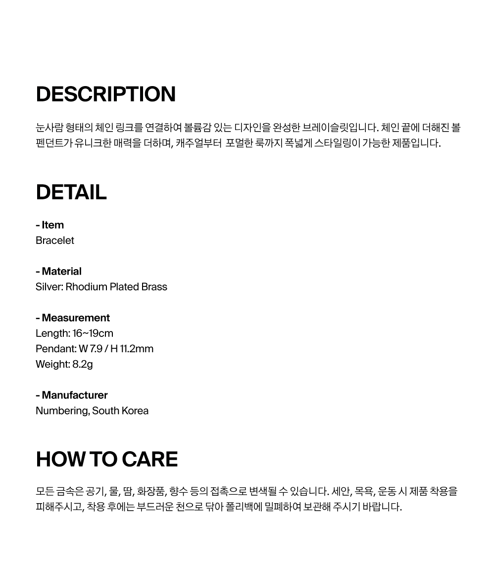 넘버링 #5990 링크드 체인 브레이슬릿 위드 볼 참 실버