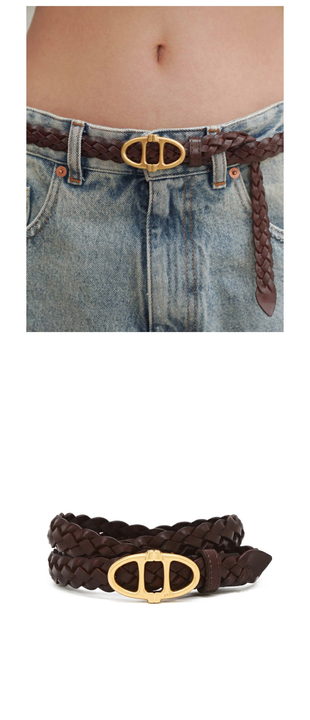 아떼 바네사브루노 액세사리 브라운 위빙 레더 더블에이 벨트 브라운
