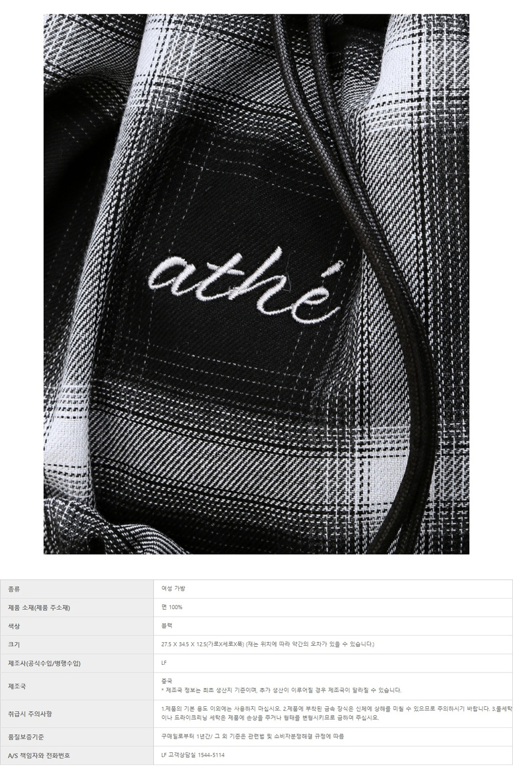 아떼 바네사브루노 액세사리 루반 블랙 체크 리본 백팩 겸 숄더백 S 블랙